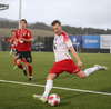 Sævar Atli með skot af 30 metrunum sem er mjög fast og Aron Birkir þarf að hafa sig allan við að blaka þessu yfir markið!