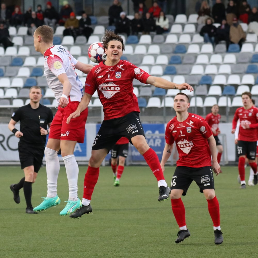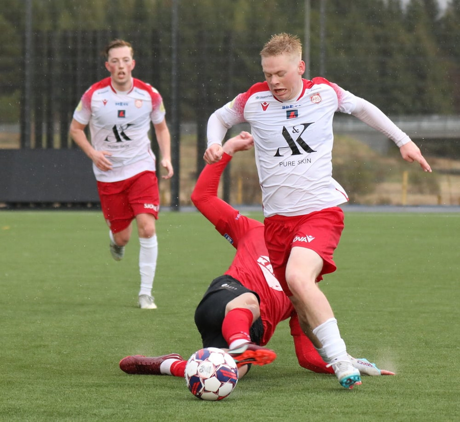 Harkaleg tækling frá Ásgeiri á Valdimar Daða.
