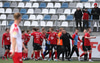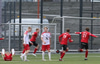 Samskiptaleysi hjá varnarmönnum Mosfellinga gerir það að verkum að Þórsarar skorar næstum sprellimark en boltinn rennur aftur fyrir