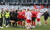 Liðin eru að ganga út á völl þessa stundina og því styttist í upphafsflautið.