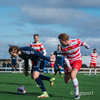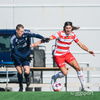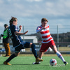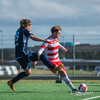 Marley Blair reynir hér að brjótast í gegnum vörn HK frá vinstri en er stöðvaður og HK hreinsar.