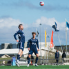 Halda boltanum hátt á vellinum eftir slaka hornspyrnu en sending Marciano fyrir markið beint í fang Mathias í marki Keflavíkur.