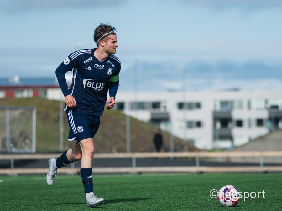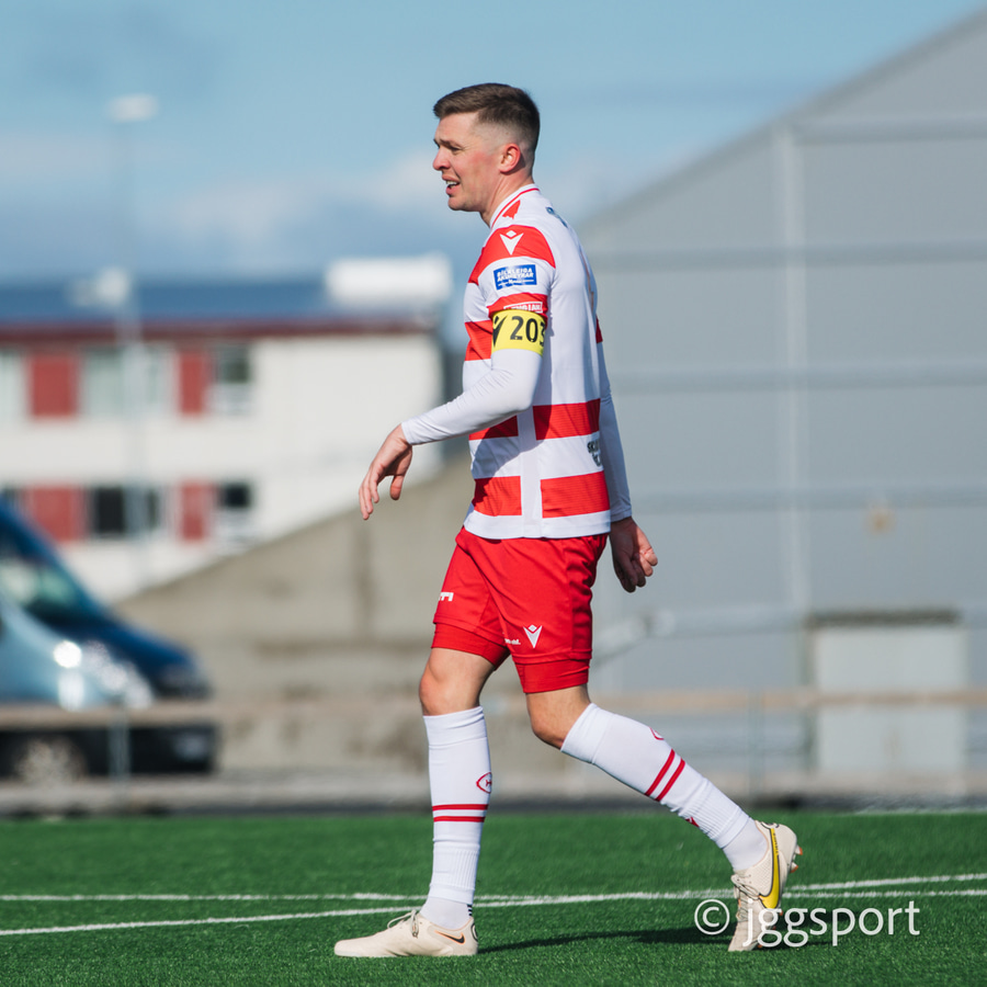 Sýnist það vera Stefán sem fær boltann í teignum frá Smylie eftir að Viktor Andri hafði hafið sóknina. En nær ekki að leggja boltann almennilega fyrir sig og ná skoti.