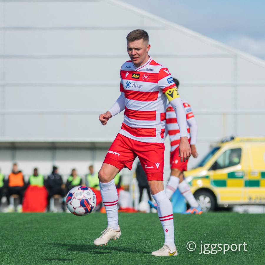 HK fær aukaspyrnu á hættulegum stað eftir brot á Eyþóri.