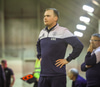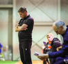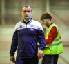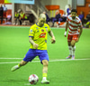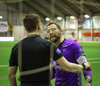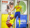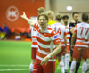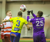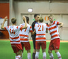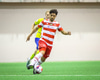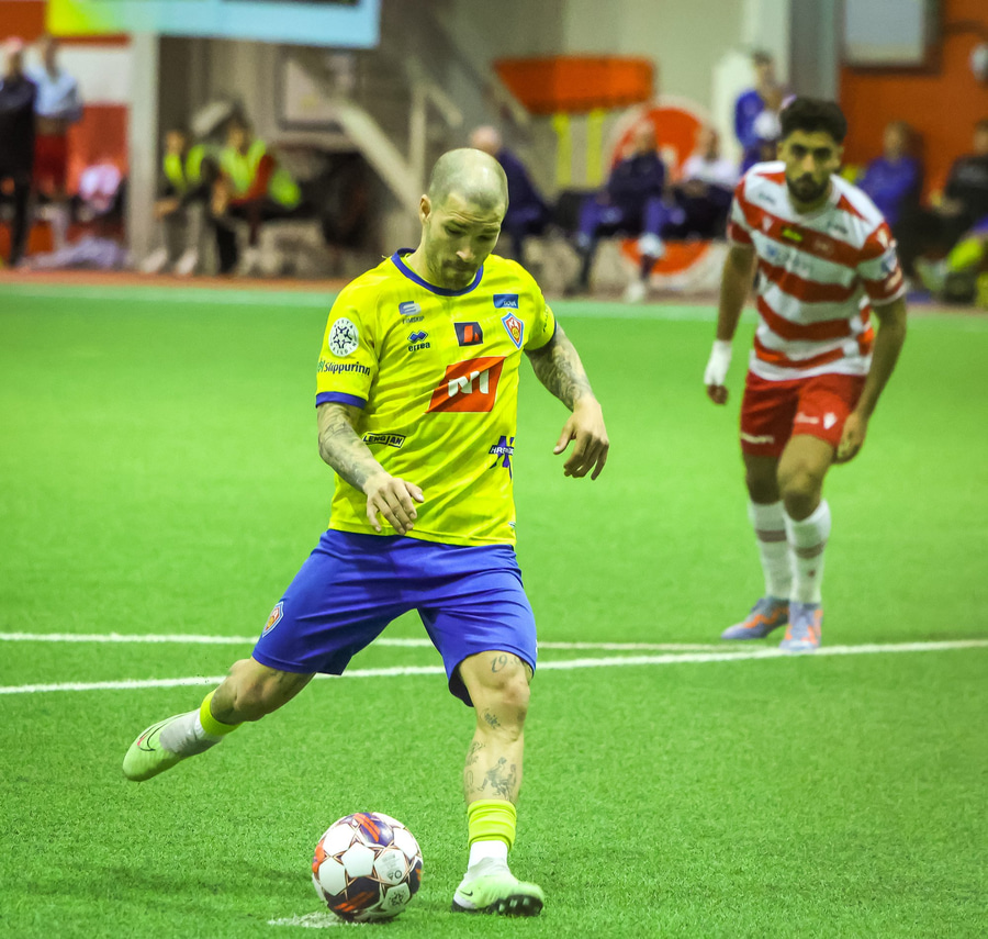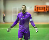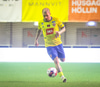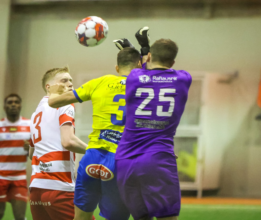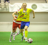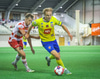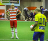 Birgir Baldvins hér með fyrirgjöf sem er nálægt því að enda bara í netinu en endar að lokum ofan á þaknetinu.