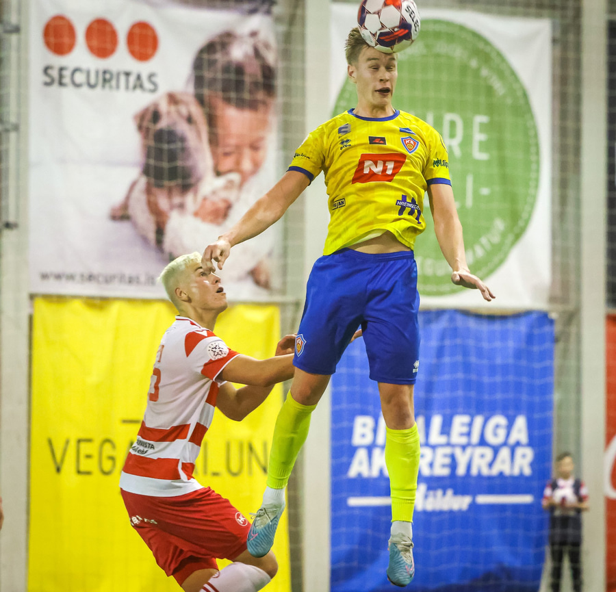Hallgrímur Mar nálægt því að skora stjörnu mark. Birgir Baldvins með fyrirgjöf og Hallgrímur reynir að taka hann á lofti með hælmum en boltinn í stöngina.