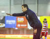 ívar liggur hér eftir harkalegt einvígi við Hrannar Björn. Er samt staðinn á fætur og virðist vera í lagi