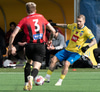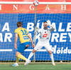 Jajalo hikstar all svakalega þegar boltinn er á leið til hans. Hann tekur svo ákvörðun alltof seint að mæta boltanum. Birnir er á undan honum en skotið á opið markið fer framhjá.