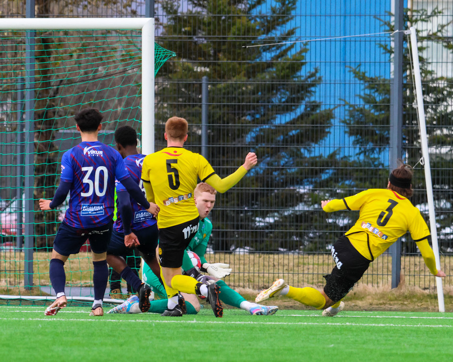 Skallaði boltann inn eftir fyrirgjöf frá hægri. Viktor markvörður var í boltanum en náði ekki að koma í veg fyrir að hann endaði í markinu.
