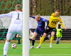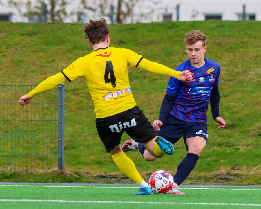 Daníel Ingi með sendingu á Steinar sem tekur skotið en Viktor ver af öryggi.