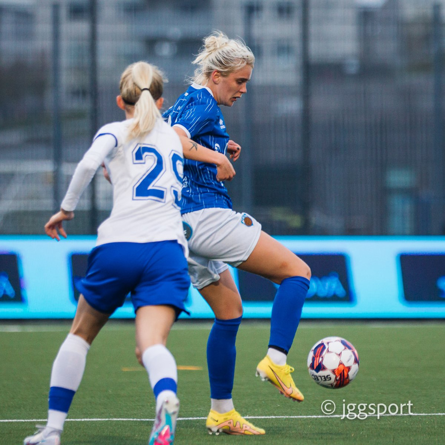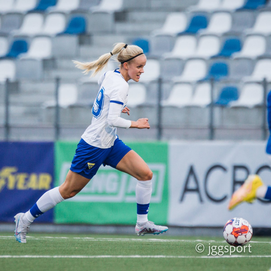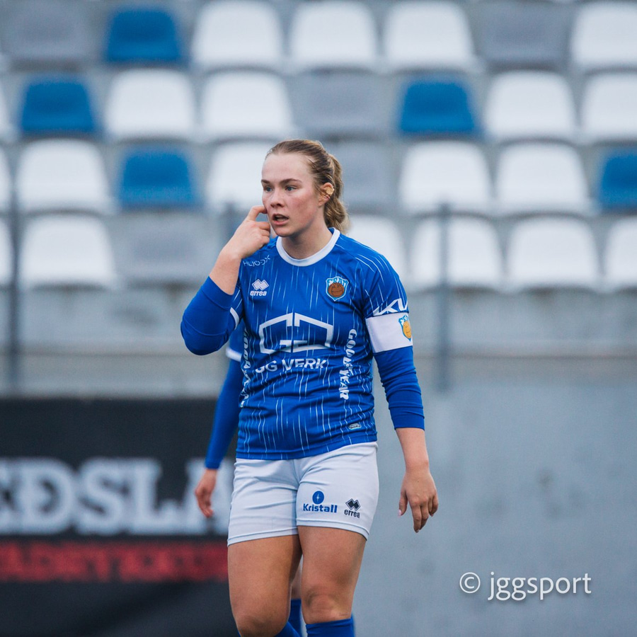 Þórey kemur á sprettinum upp hægri kantinn og í staðinn fyrir að setja hann fyrir markið á Ylfu þá hleður hún í skotið en setur hann í stöngina. Boltinn berst svo út í teiginn þar sem Alexa er en hennar skot er yfir.
