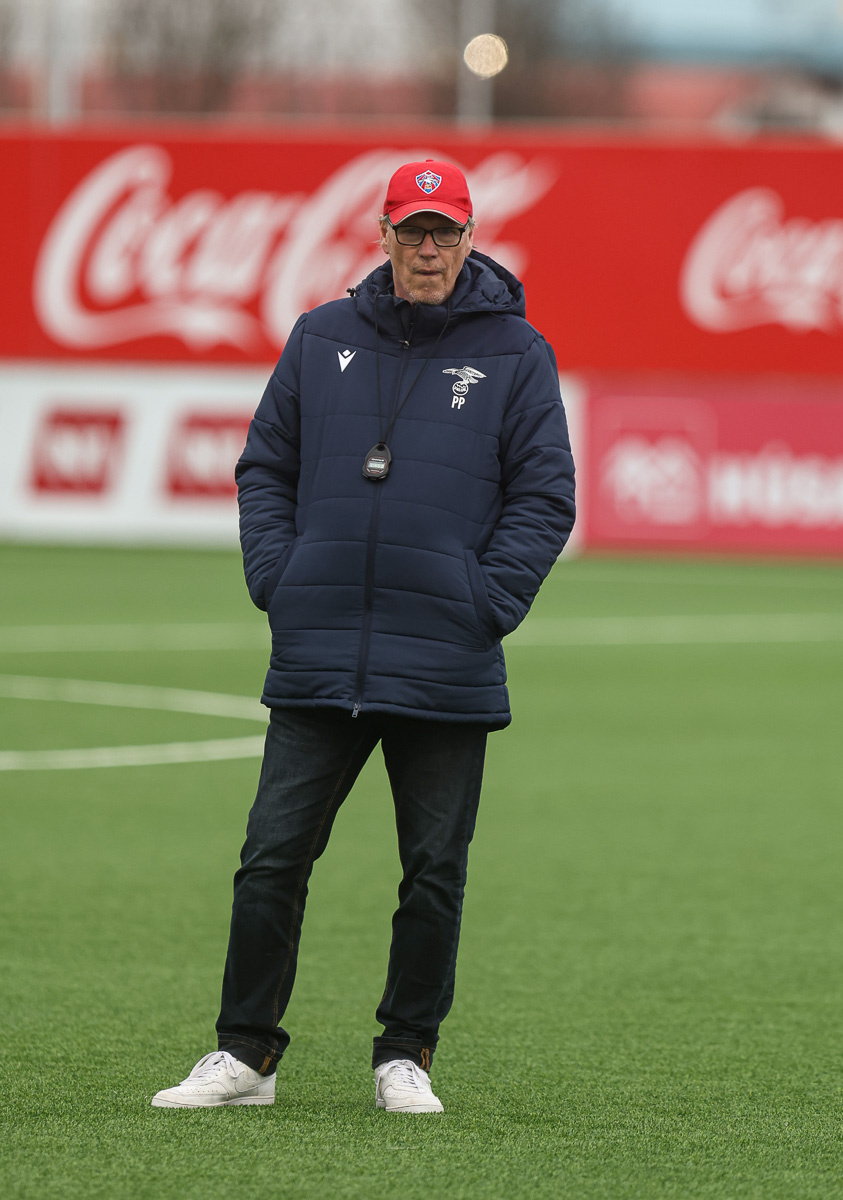 Þetta virðist hafa átt að vera beint af æfingasvæðinu en það gekk ekki alveg eftir og Valsarar koma boltanum í innkast
