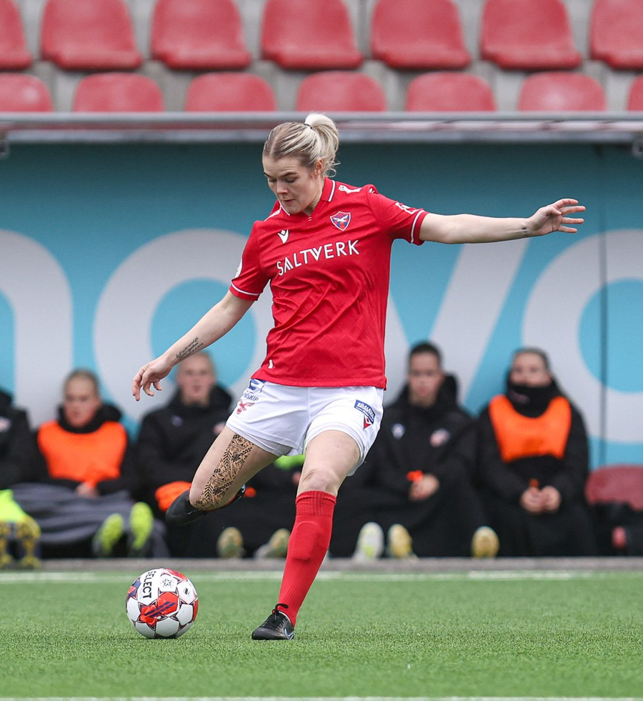 Ásdís Karen fær fastan bolta upp kantinn sem hún nær uppi við endalínu. Hún cutar inn og tekur Dominique á áður en hún nær skoti á markið en Melissa ver