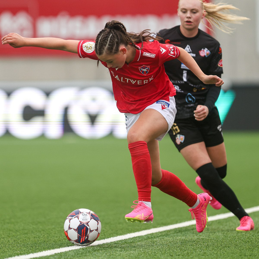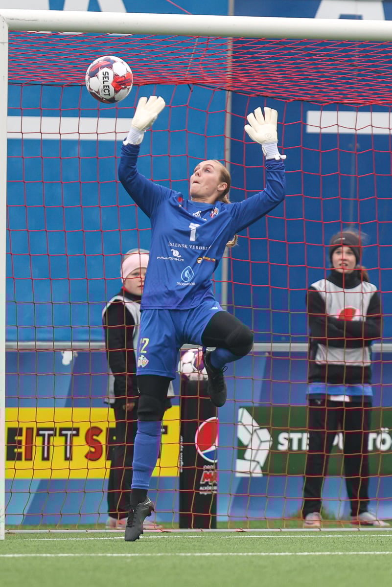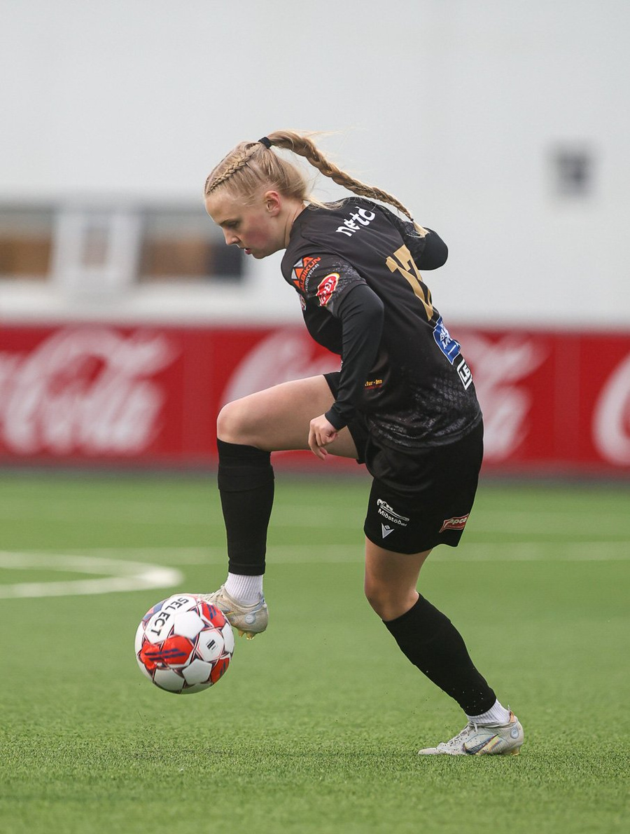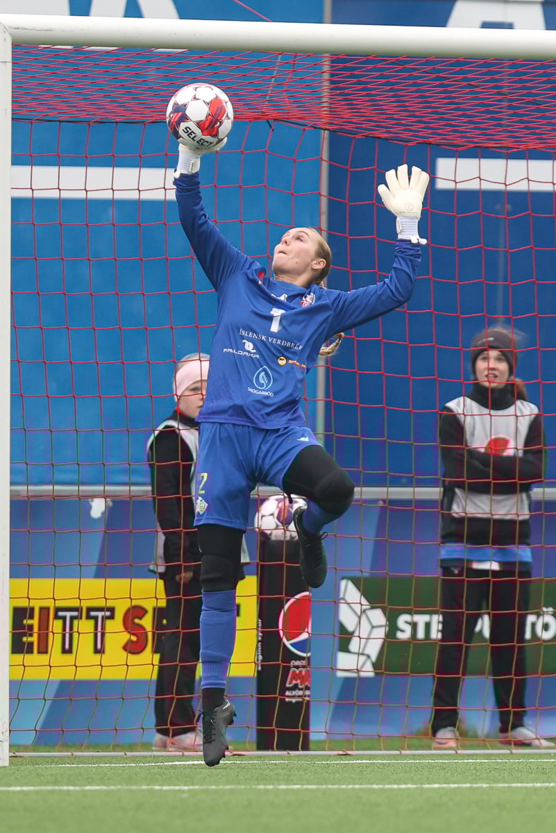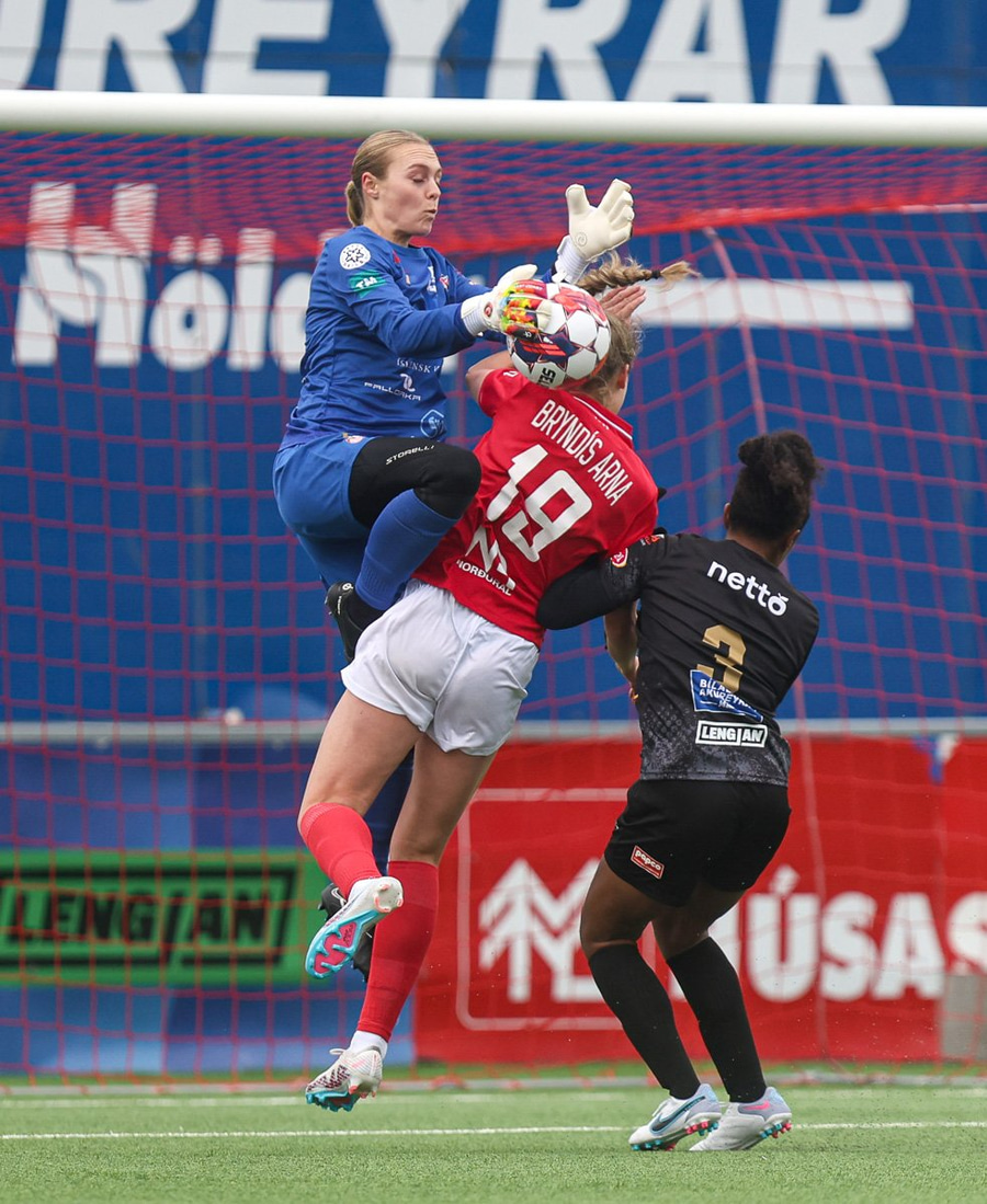 Jakobína misreiknar háan bolta upp kantinn og missir hann á milli lappanna þar sem Elísa er, hún tekur á skarið og á bolta inn í sem virðist vera teiknaður á hausinn á Bryndísi en Melissa gerir vel og stekkur fram fyrir hana og grípur boltann