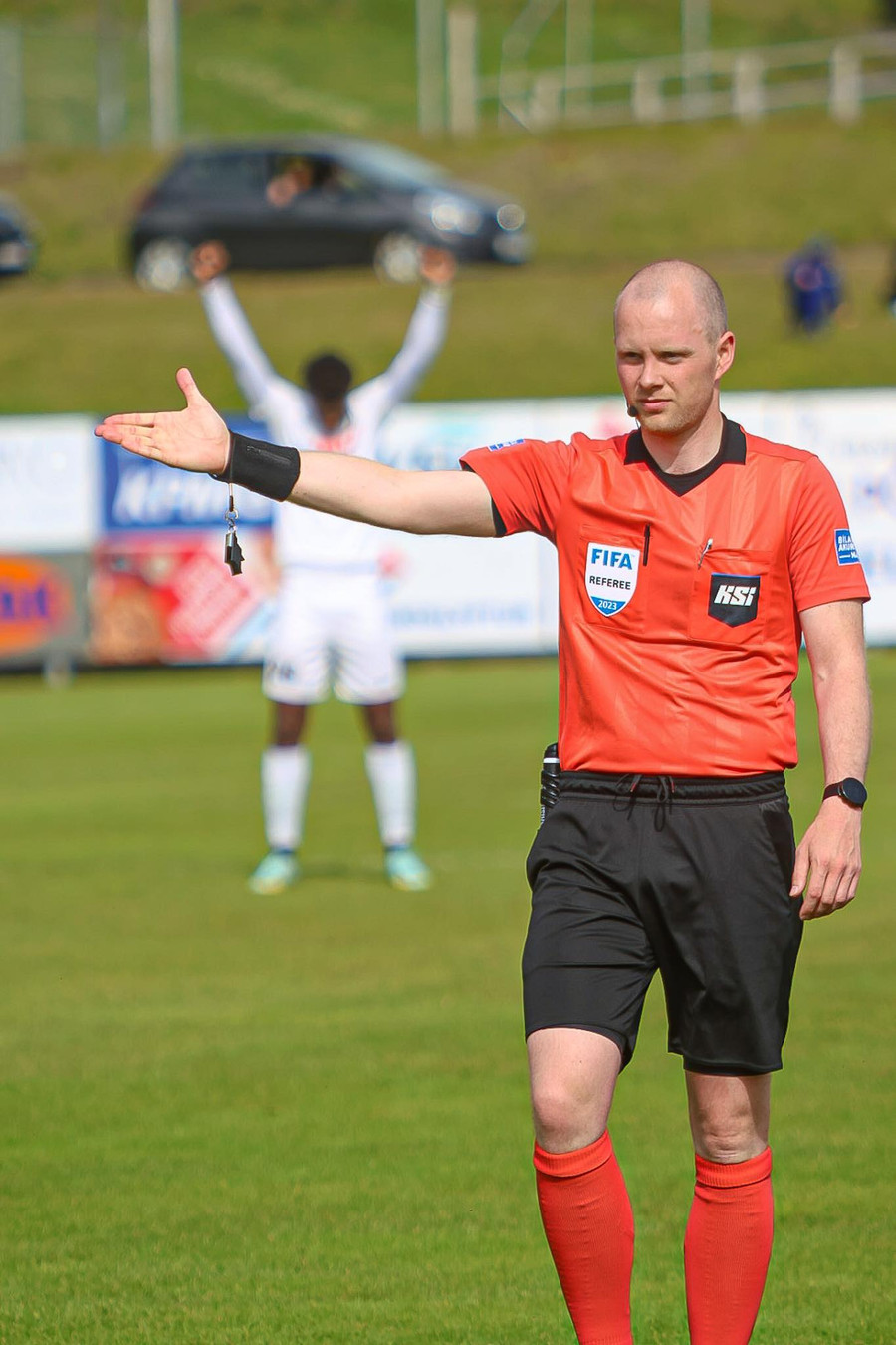 Brot á miðjum velli, frekar saklaust en Ívar vill spjalda.