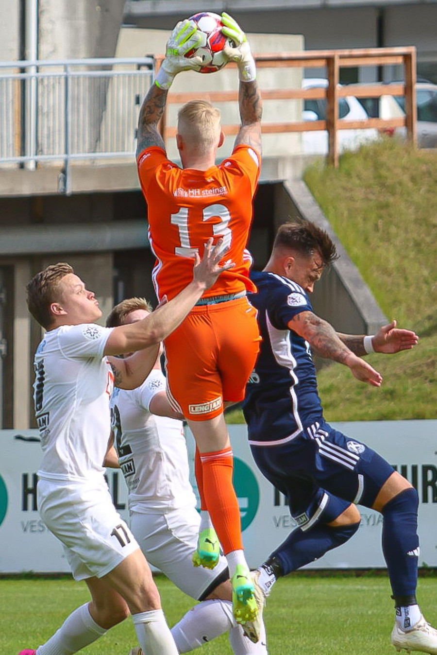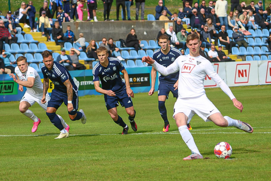 +1 Hermann leggur laglega innfyrir á Oliver sem er í rauðafæri en Mathias Rosenörn ver frá honum. Oliver fær boltann aftur en á skot í hliðarnetið.