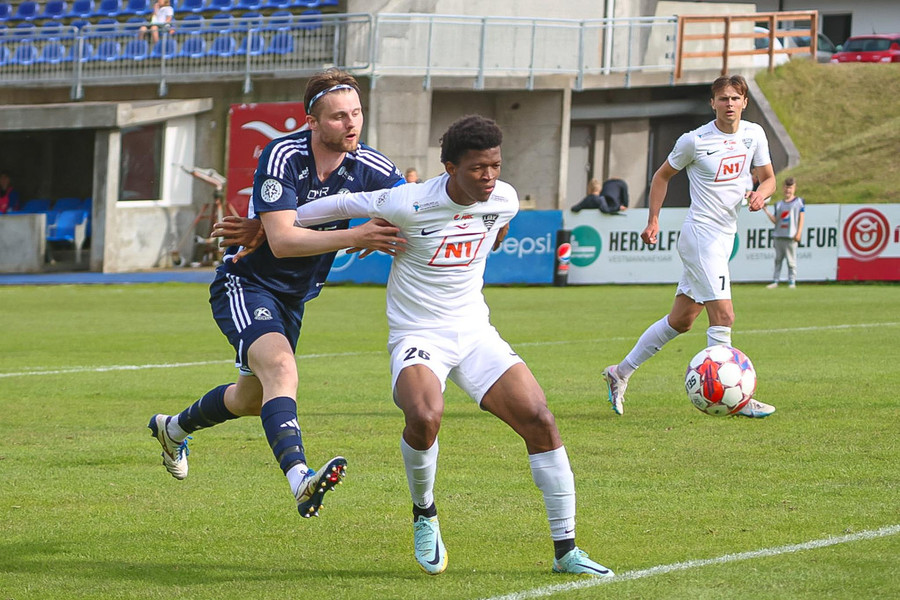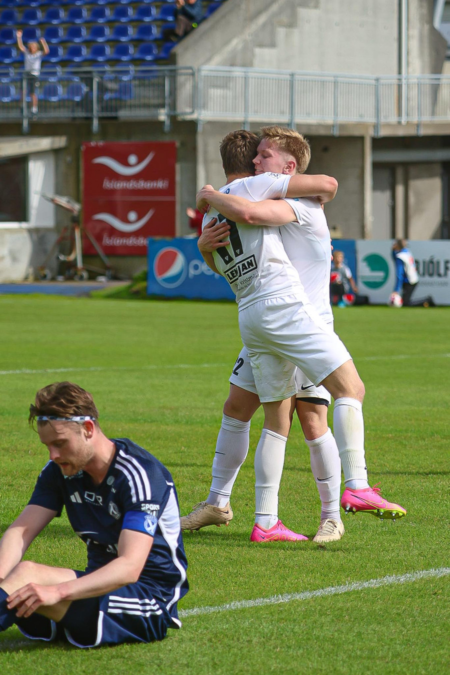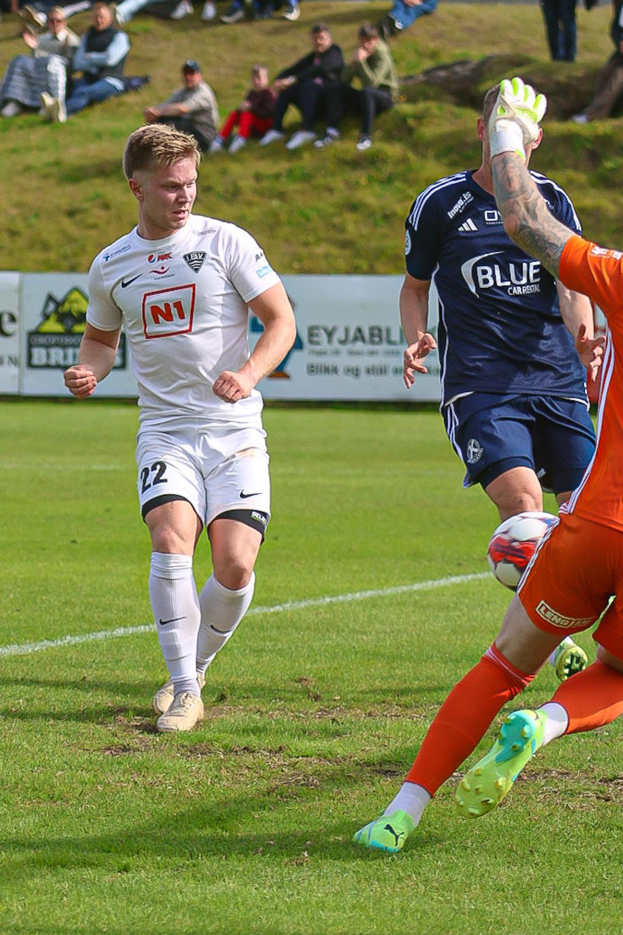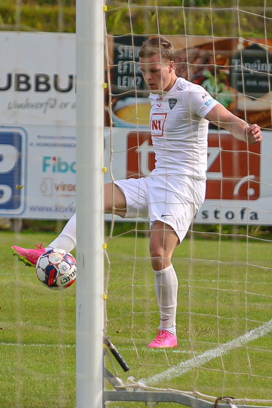 Sverrir Páll Hjaltested í dauðafæri í teignum, hálfum metra frá marki en skóflaði boltanum yfir. Sem betur fer fyrir hann var hann rangstæður.