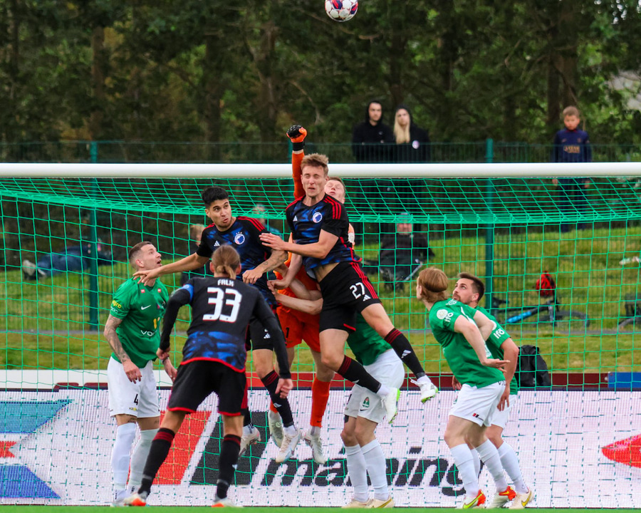 FCK heimta víti og vilja meina að boltinn hafi farið í höndina á Oliver en Ungverjinn segir bara áfram með leikinn, hornspyrna