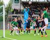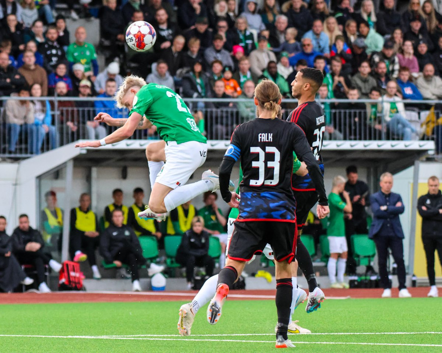 Hornspyrna á fjær og VÖM nær skalla í fjærhornið en á eitthvern ótrúlegan hátt nær Jordan Larsson að bjarga á línu í baráttu við Gísla