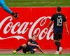 Úr stúkunni leit þetta út eins og boltinn hefði verið nokkrum sentimetrum frá því að fara í markið en þetta var nokkra metra framhjá