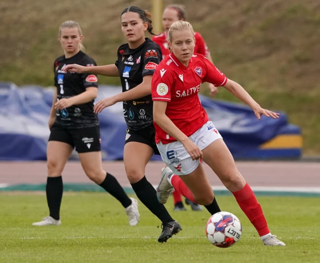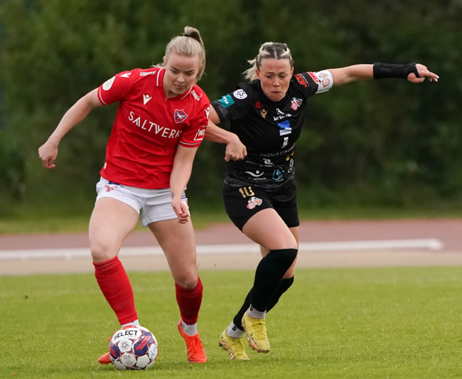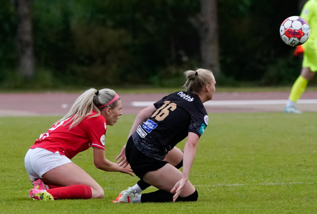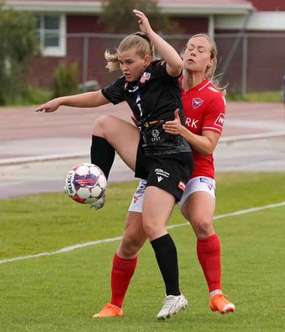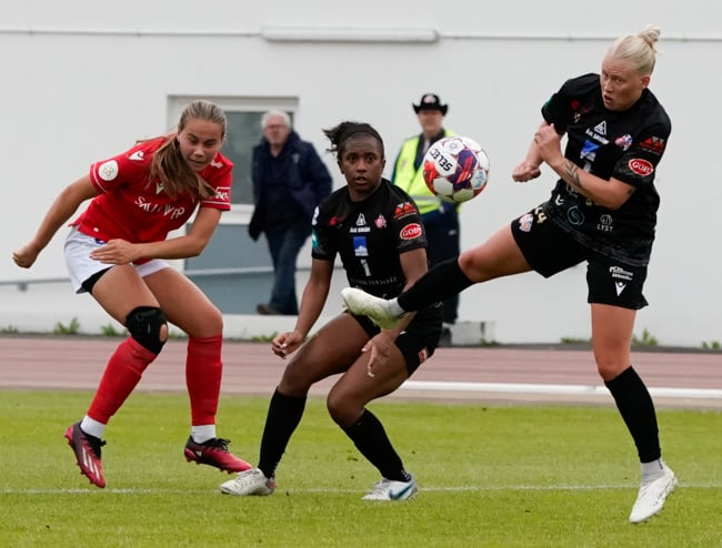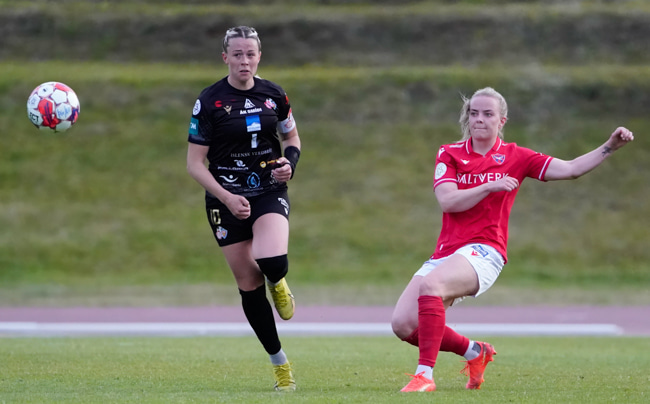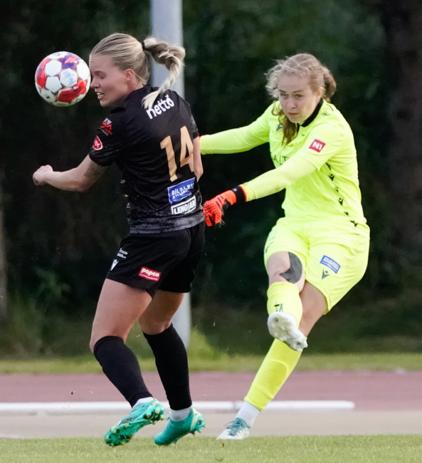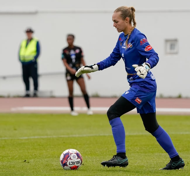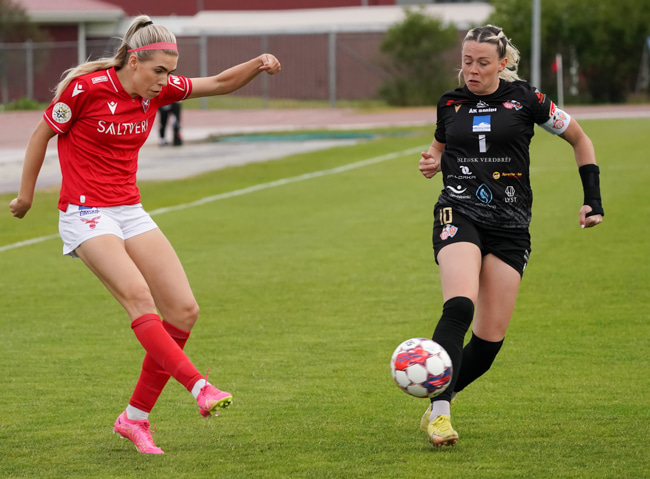 Lise fer illa með Huldu Björg og kemur sér í fínt færi í teignum. Nær fínu skoti en Melissa gerir vel að verja í horn