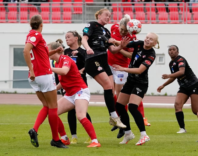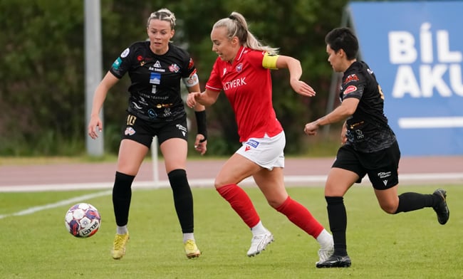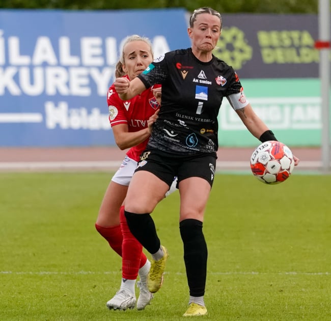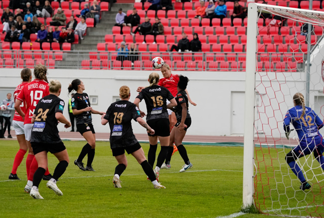 Amanda í færi eftir hornspyrnu en nær ekki að koma boltanum almennilega fyrir sig og ekkert verður úr.