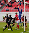 Arna Sif skallar boltann aftur fyrir markið eftir hornið beint á kollinn á Bryndísi sem nær fínum skalla en Thanai vel staðsett á línunni og nær að skalla boltann frá.
