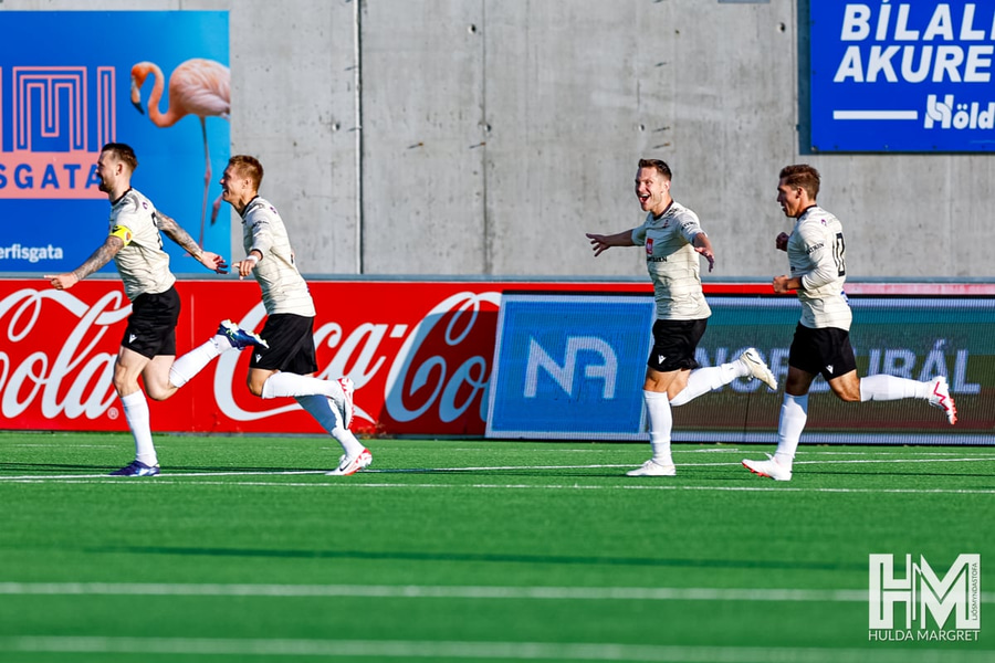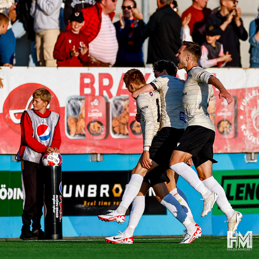 Hulda Margrét ljósmyndari er á vellinum fyrir okkur og hér koma myndir af fögnuði Víkinga þegar markið kom.