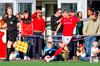Það er stórfenglegt fótboltaveður í borginni, sól, heiðskýrt og 18 stiga hiti (samkvæmt Samsung símanum mínum). Hvet alla til að bregða sér á völlinn og styðja við sitt lið.