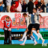 Mér sýnist Birnir Snær liggja í grasinu og kveinkaði sér gríðarlega. Sá ekki hvað gerðist en hann er að fá aðhlynningu og er stiginn á fætur en virðist vera sárþjáður. Spurning hvort hann geti haldið áfram. Fer hér út að hliðarlínu.