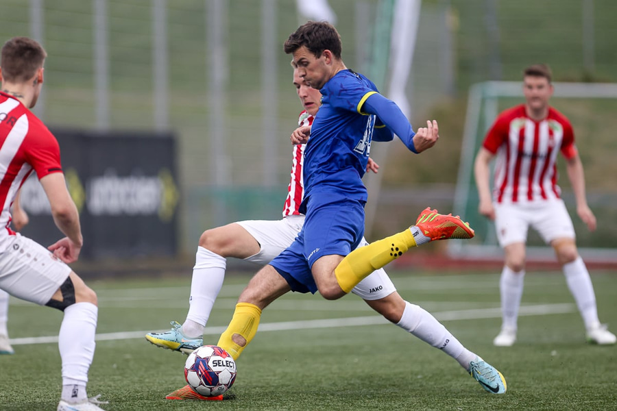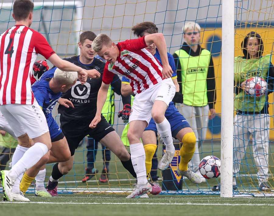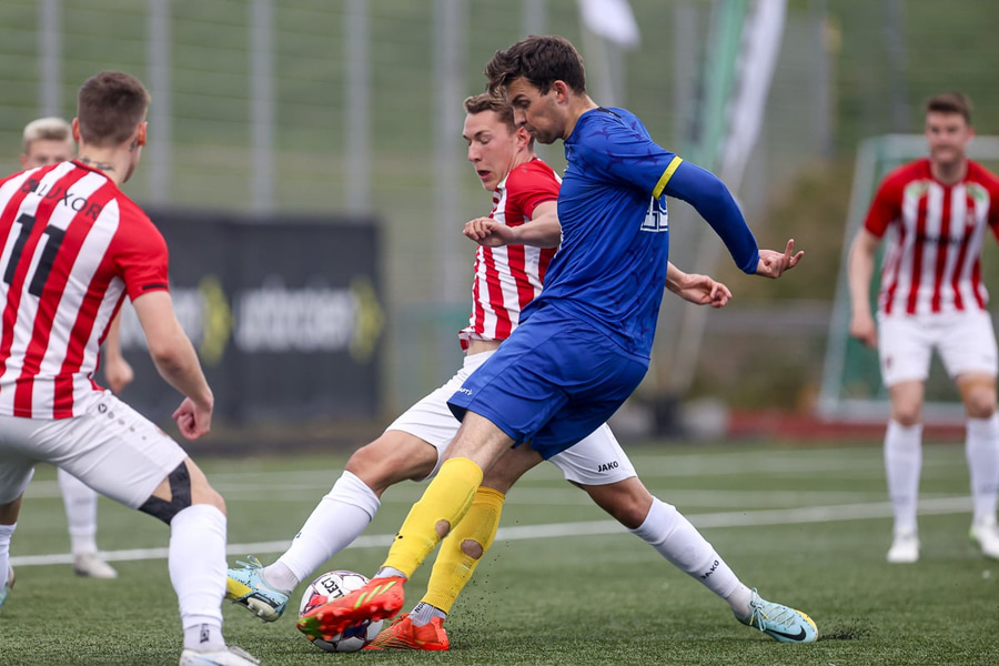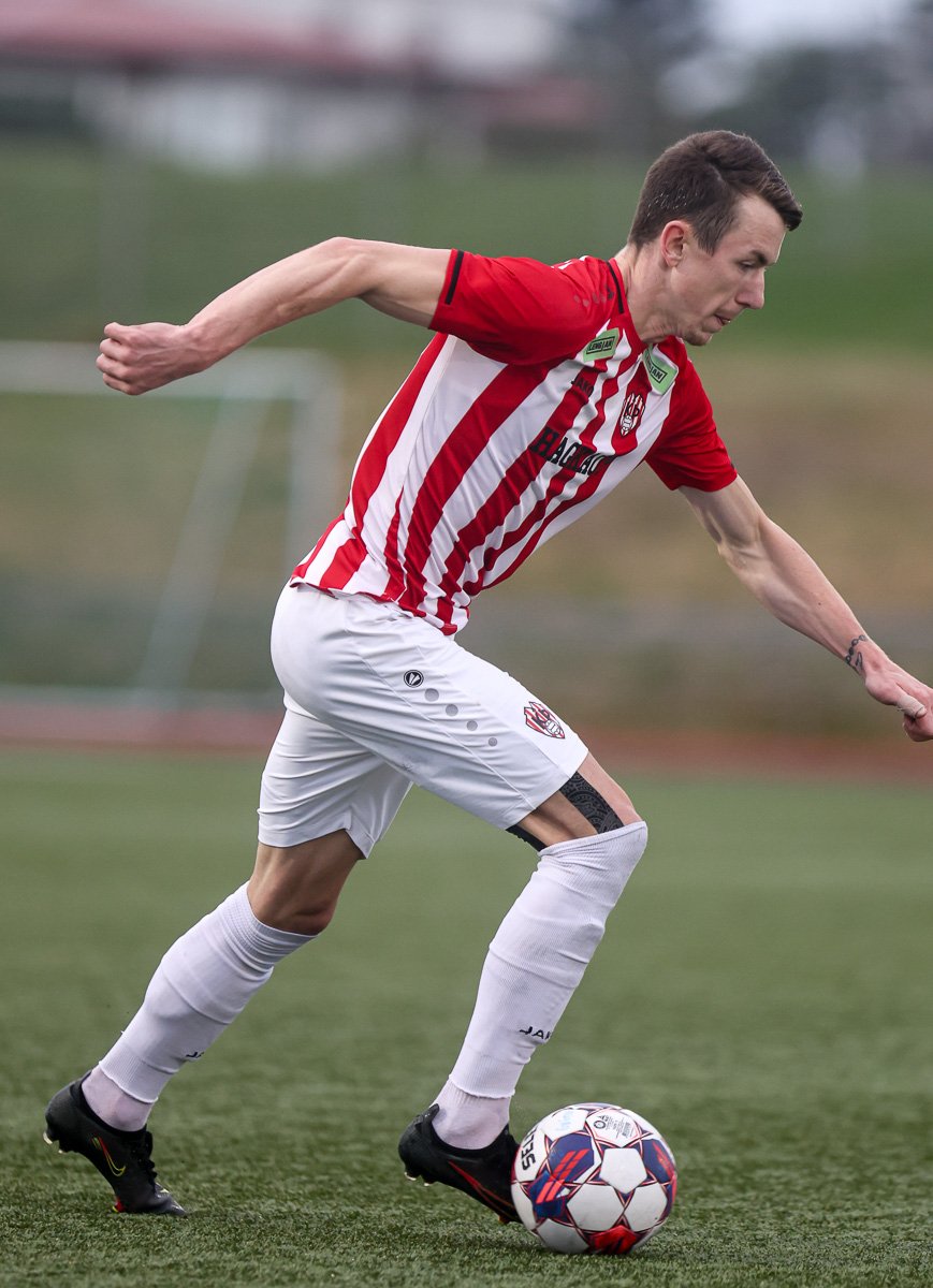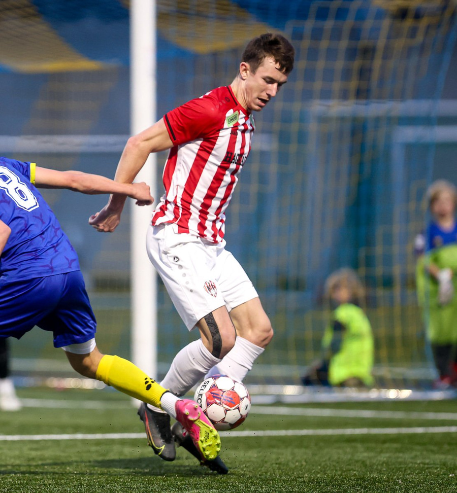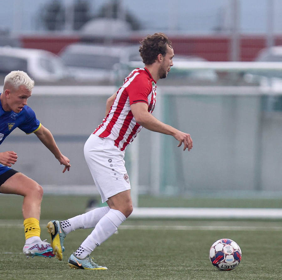 Kostiantyn Pikul með alveg hrikalega hreinsun beint á Arnar Núma sem tekur skot en Kostiantyn nær að henda sér fyrir það. Arnar Númi fær boltann aftur, rennir honum til hægri á Kristófer sem setur hann í fjær.