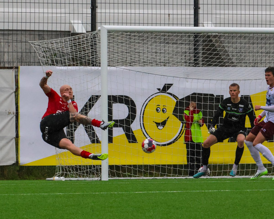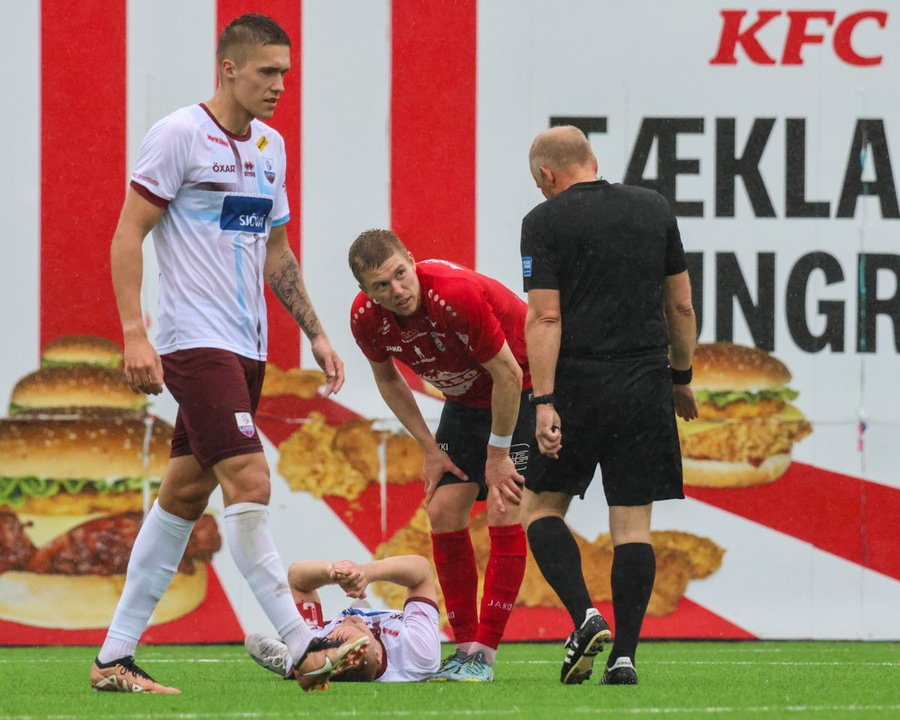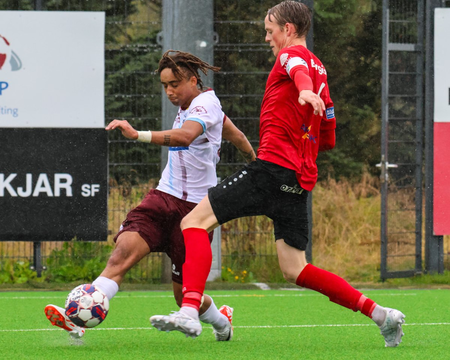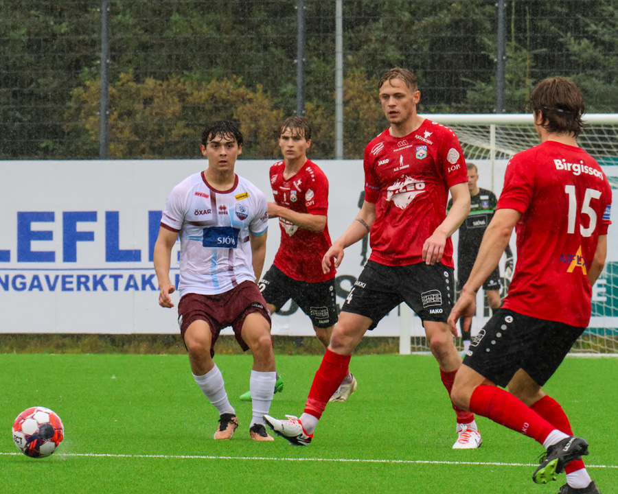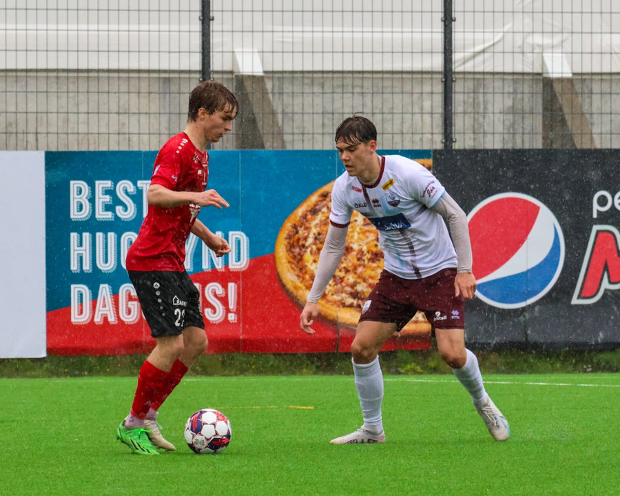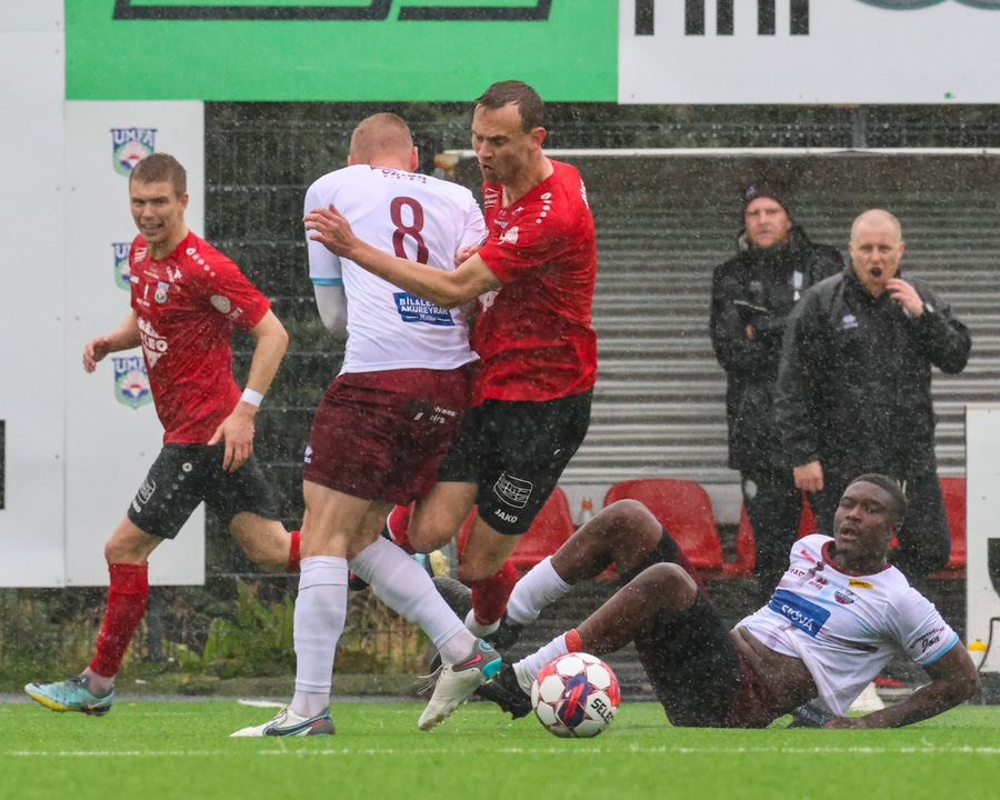 Klaufagangur hjá Gunnari í vörninni og Omar við það að sleppa í gegn. Rasmus nær þó að stinga sér fram fyrir hann og koma boltanum í horn.