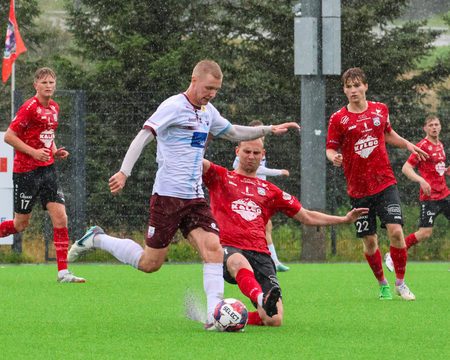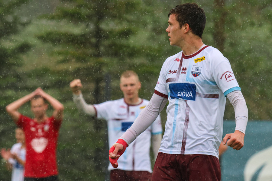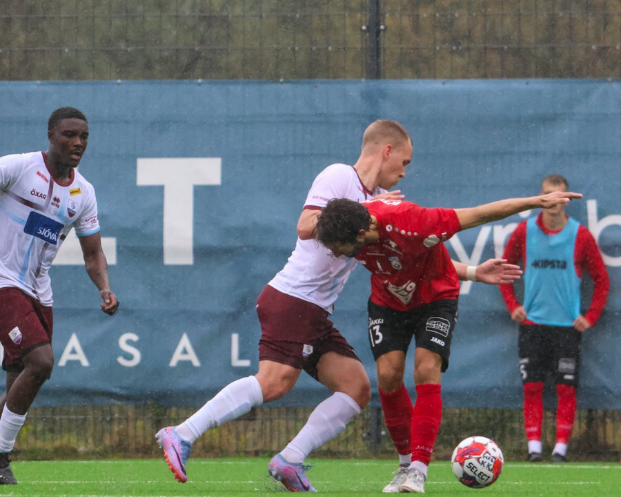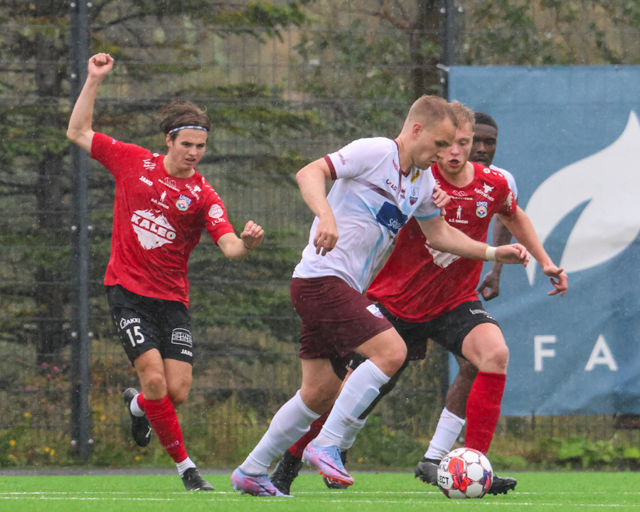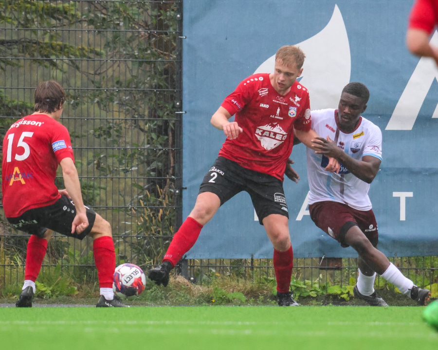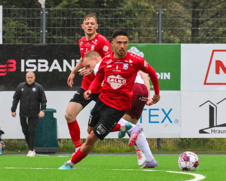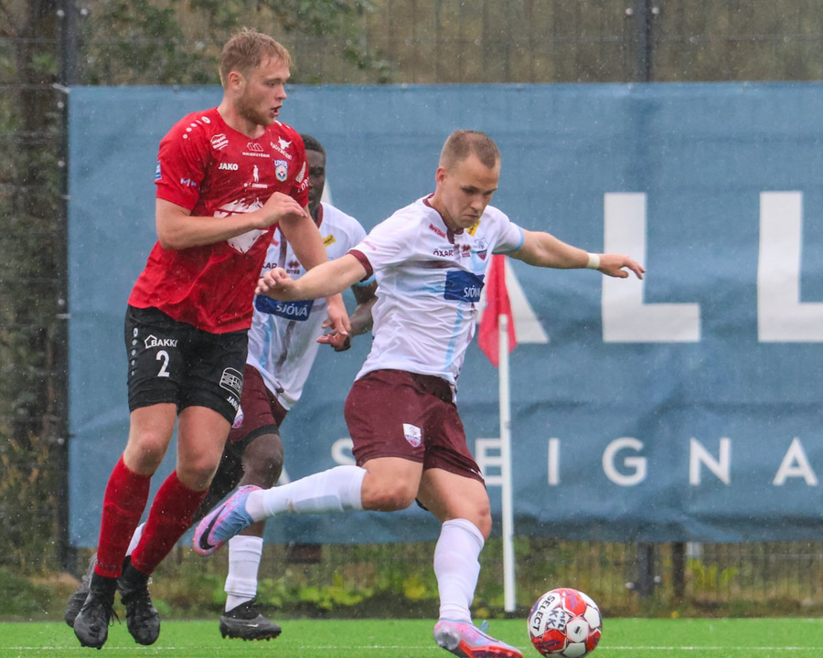 Klaufagangur hjá Gunnari í vörninni og Omar við það að sleppa í gegn. Rasmus nær þó að stinga sér fram fyrir hann og koma boltanum í horn.