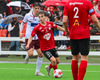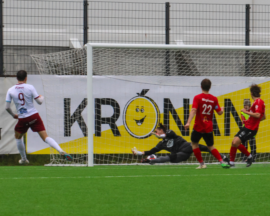 Róbert sleppur aleinn í gegn en Galshuk ver frá honum. Omar nær frákastinu og rennir boltanum út í teiginn á Róbert sem fær annað tækifæri en þá hittir hann ekki markið.