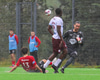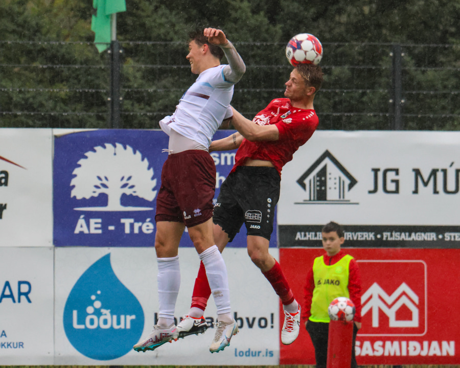 Árni tekur hornið en Arnór Gauti skallar það frá.