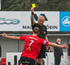 Boltinn kemur meðfram jörðinni út í teiginn þar sem Ivo er tilbúin til að skila honum í markið en Róbert Quental er fljótur að átta sig og mætir honum. Þeir lenda harkalega saman og liggja báðir eftir, stúkan vill víti en Erlendur er ekki á þeirri skoðun.