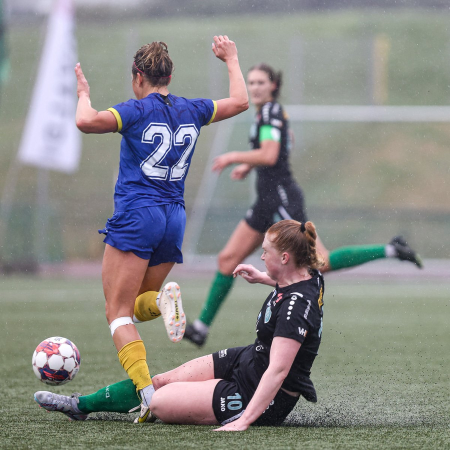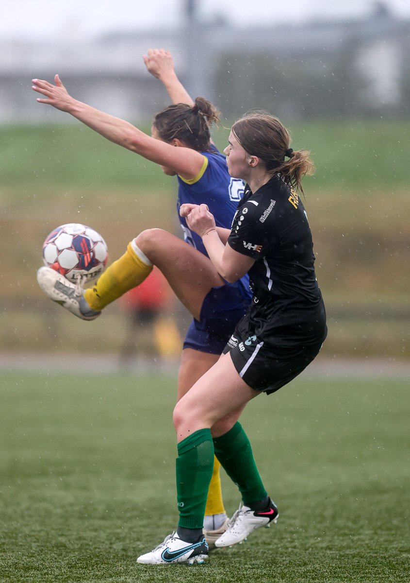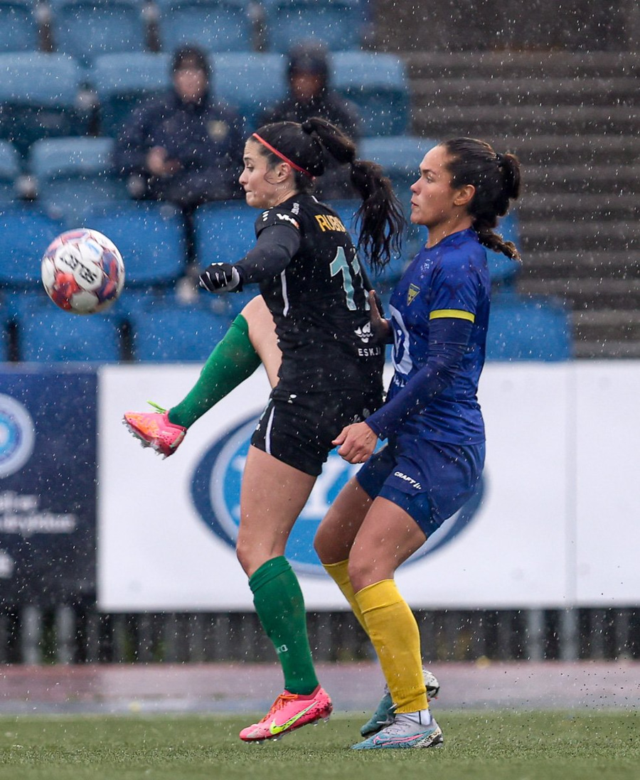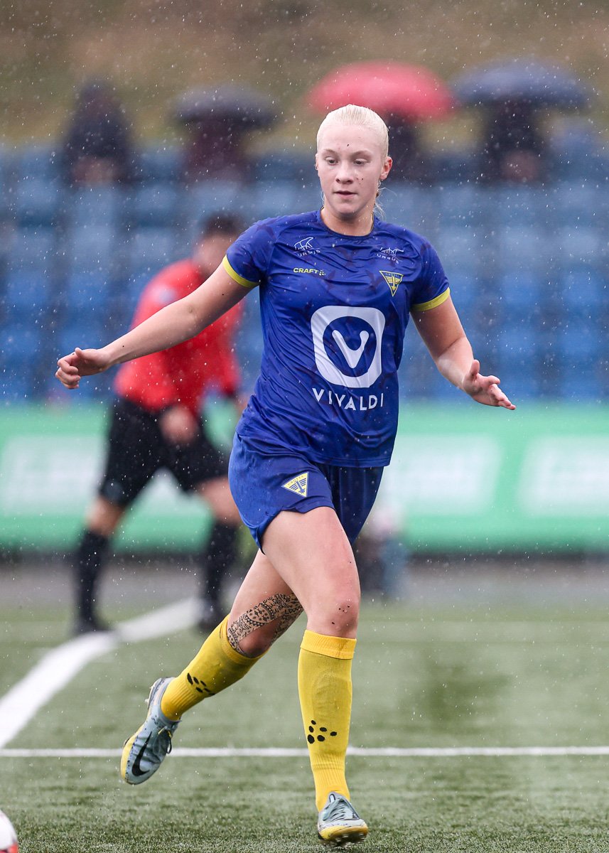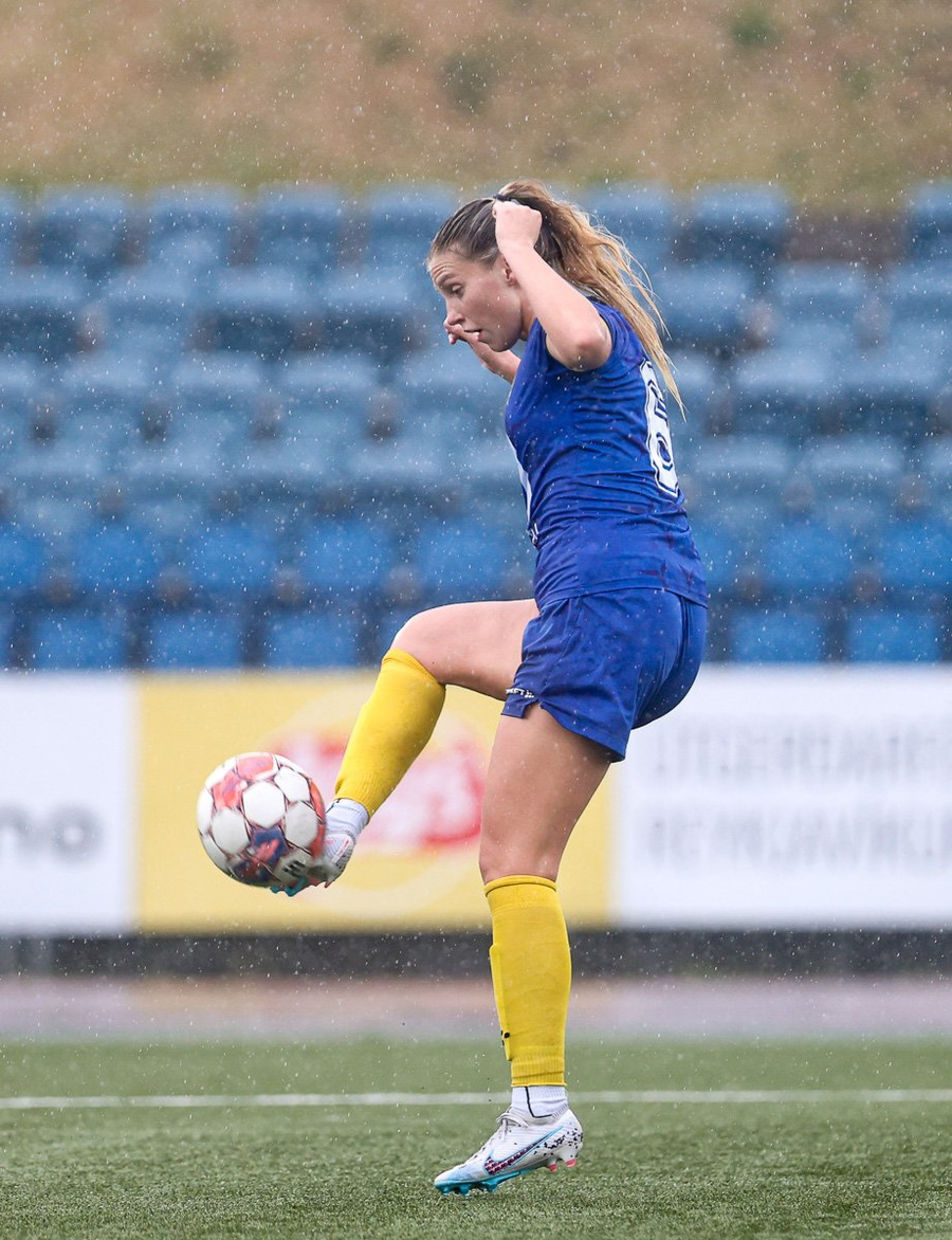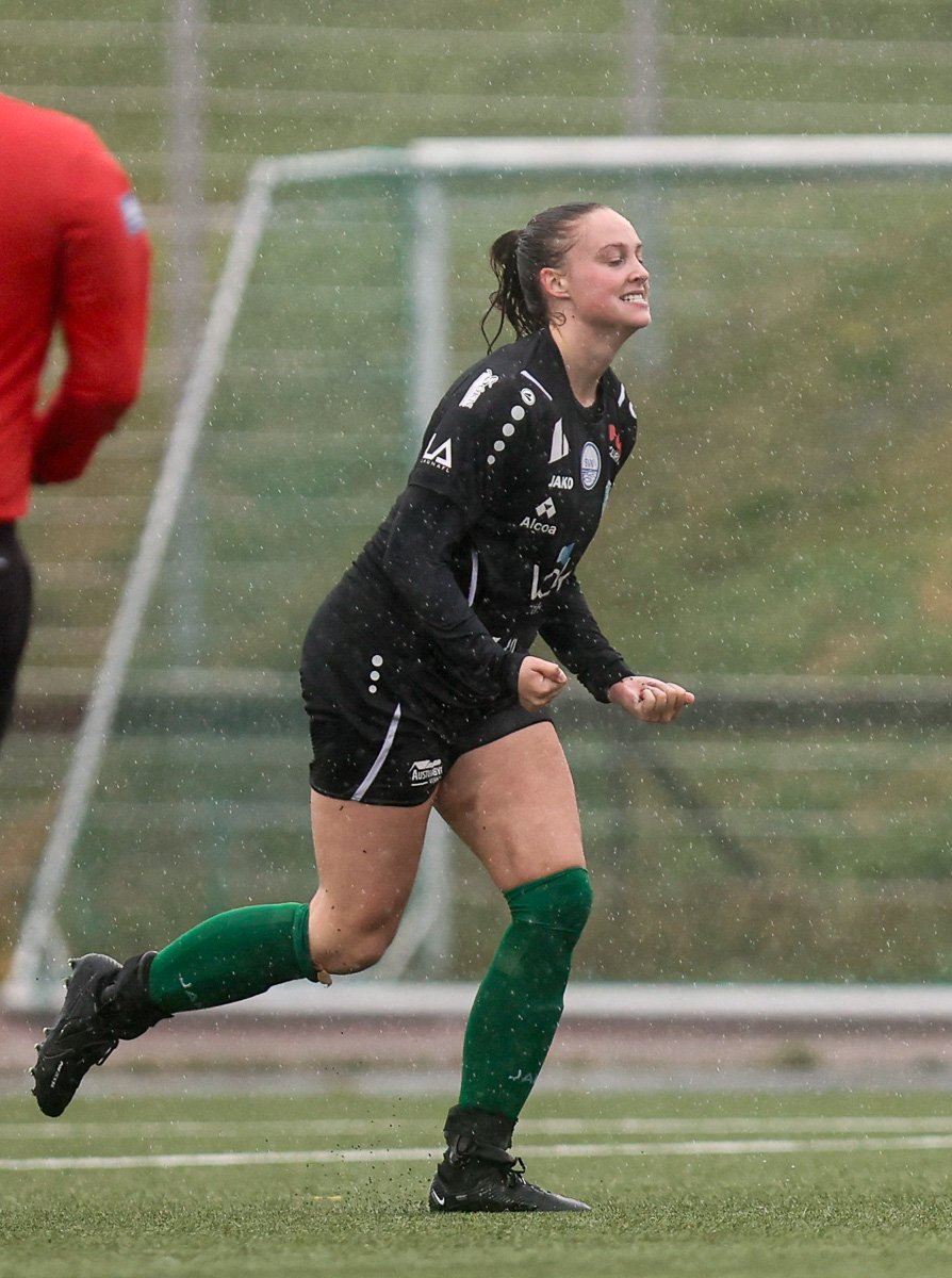 Stórskemmtilegur leikur í grenjandi rigningu. Hannah Abraham fór á kostum og skoraði fjögur mörk!