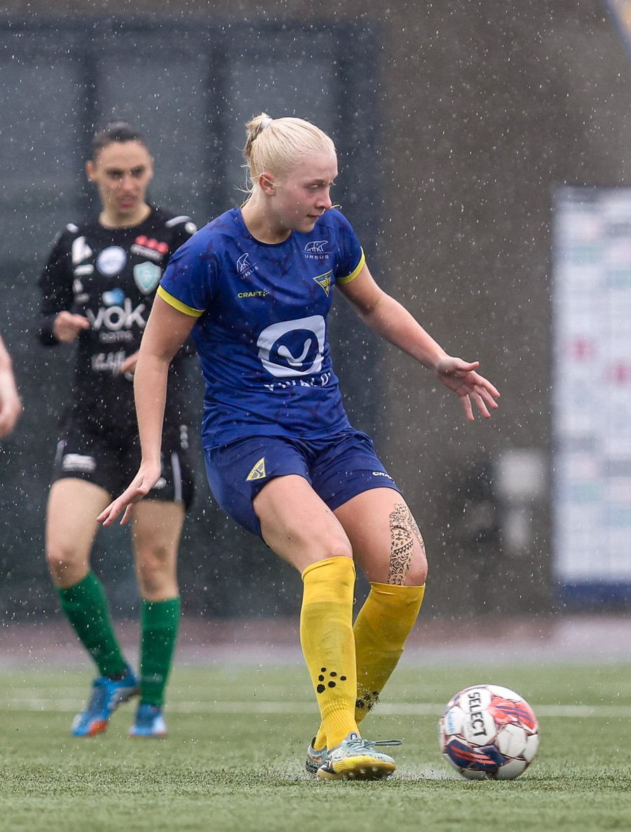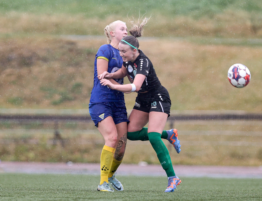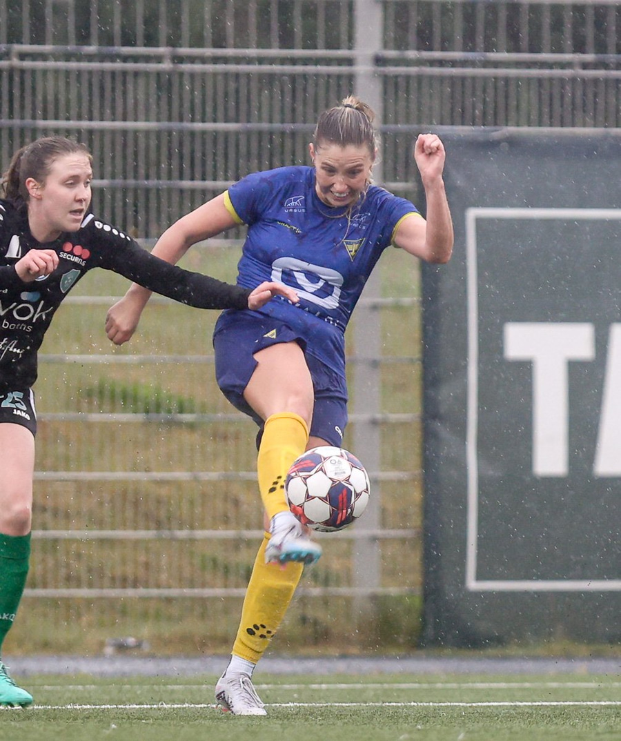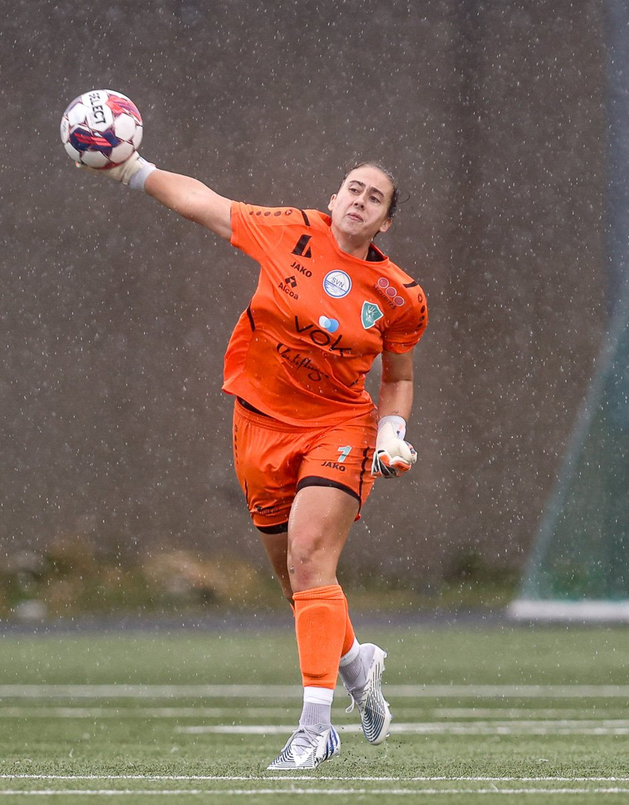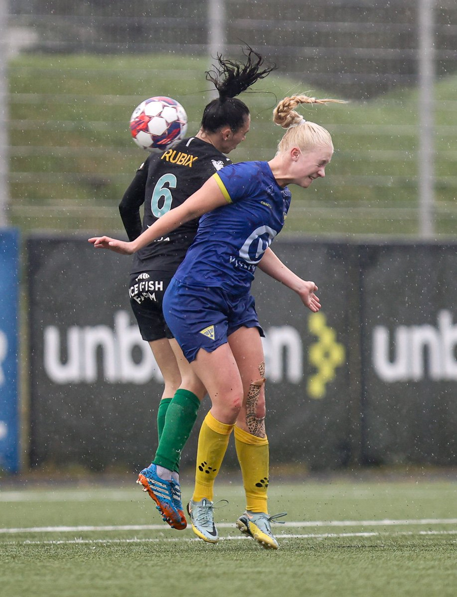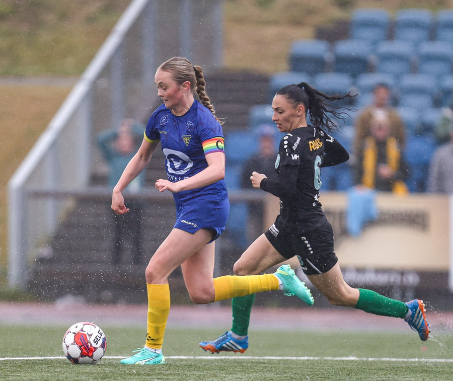 Stórskemmtilegur leikur í grenjandi rigningu. Hannah Abraham fór á kostum og skoraði fjögur mörk!
