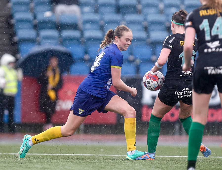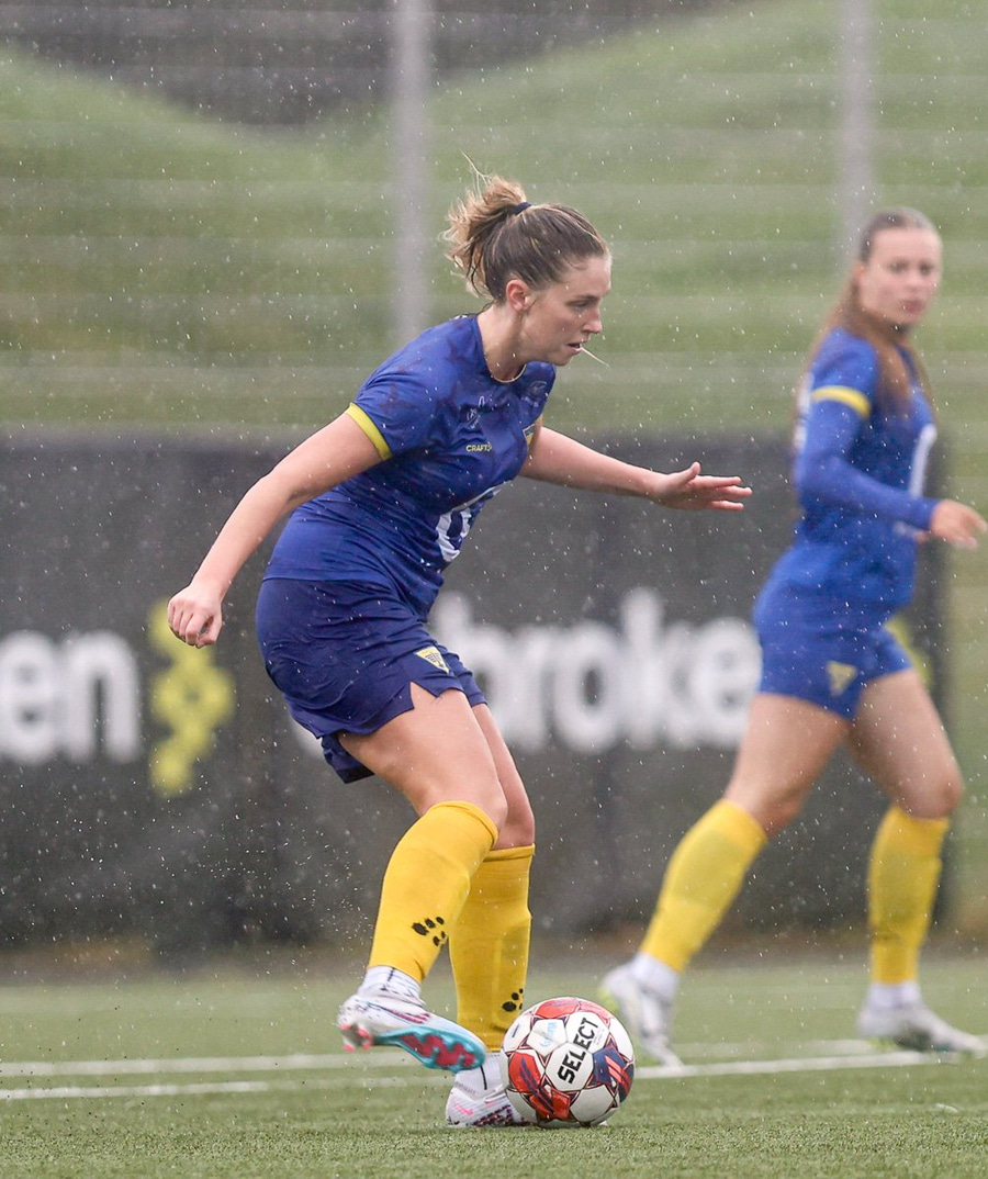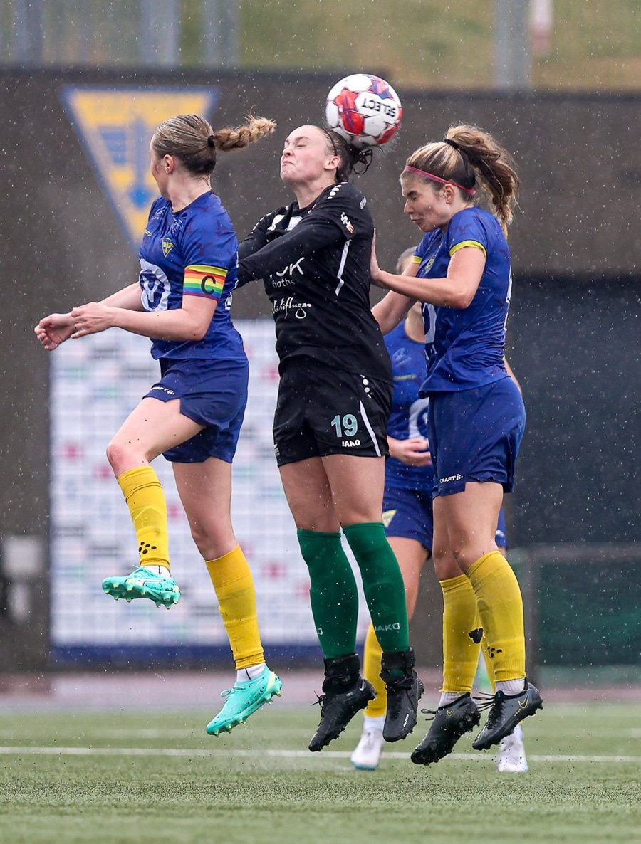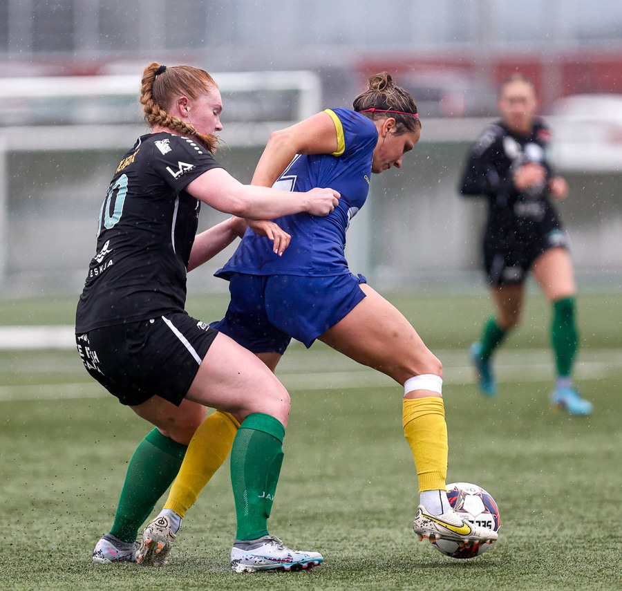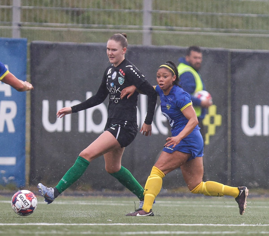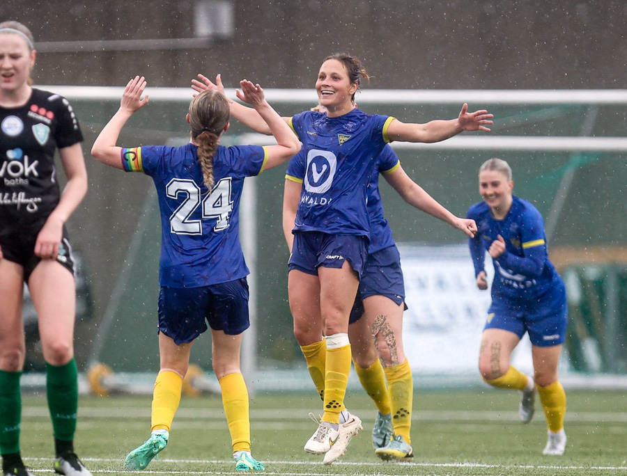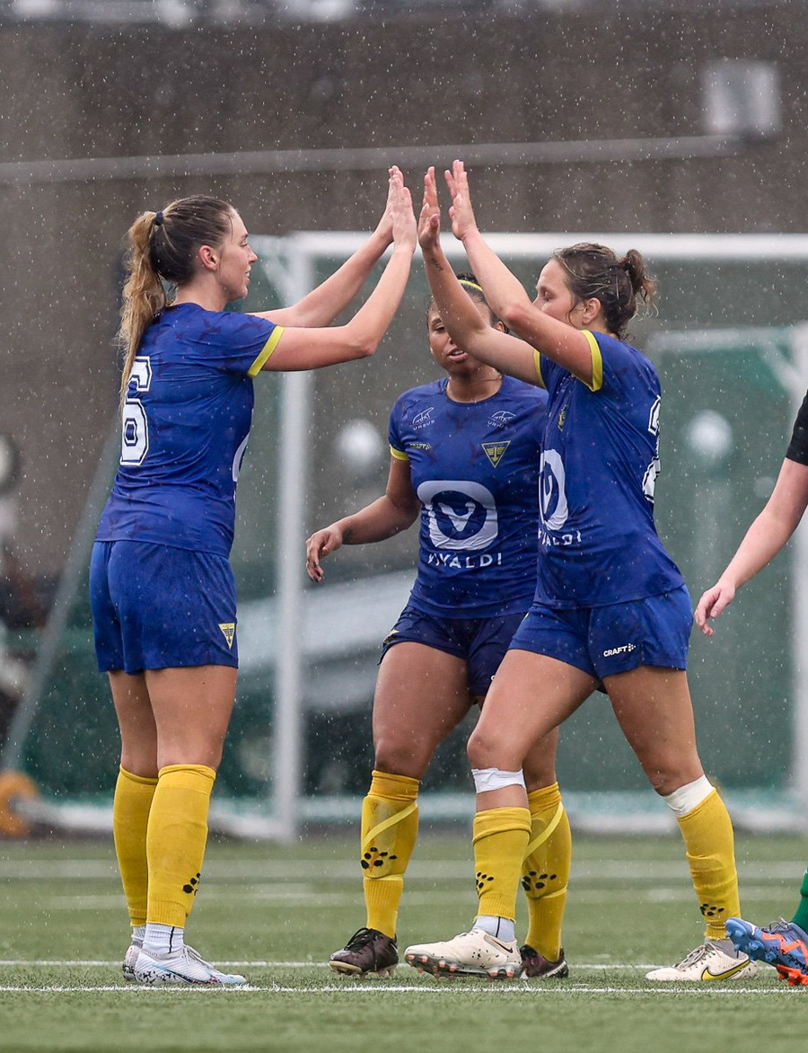 Stórskemmtilegur leikur í grenjandi rigningu. Hannah Abraham fór á kostum og skoraði fjögur mörk!