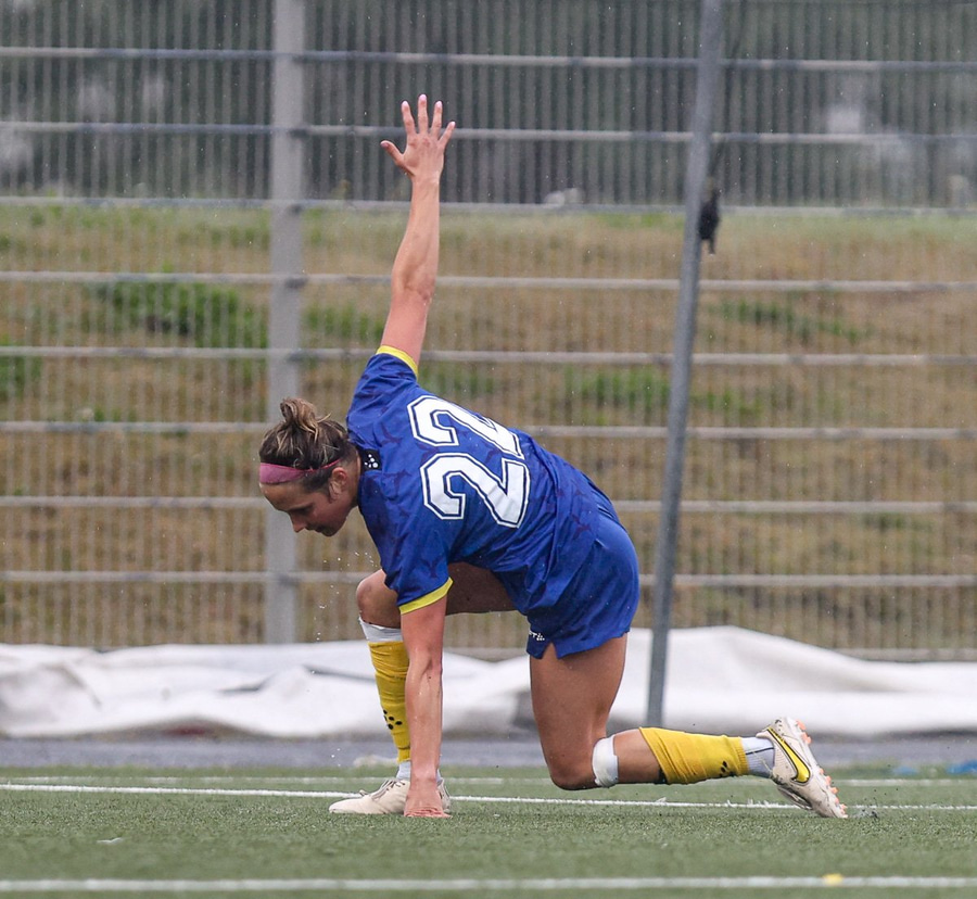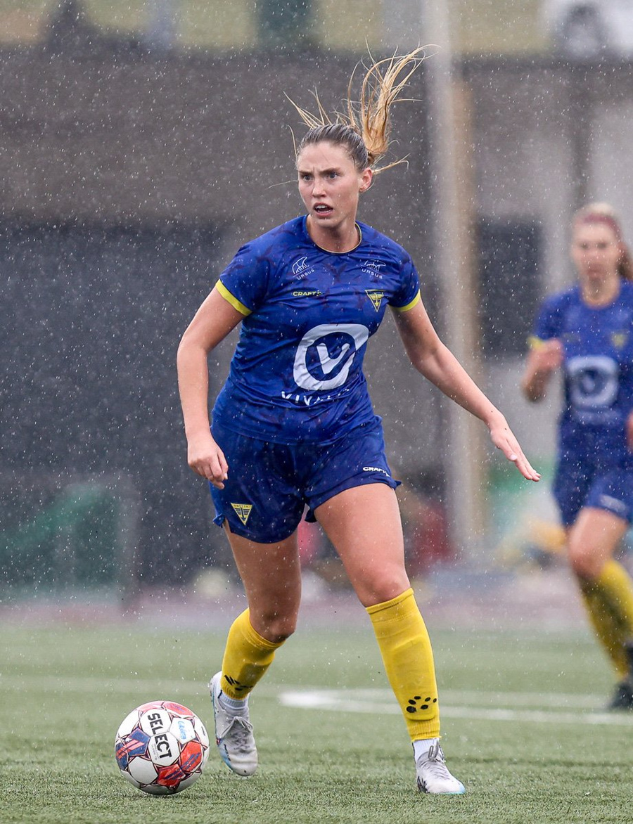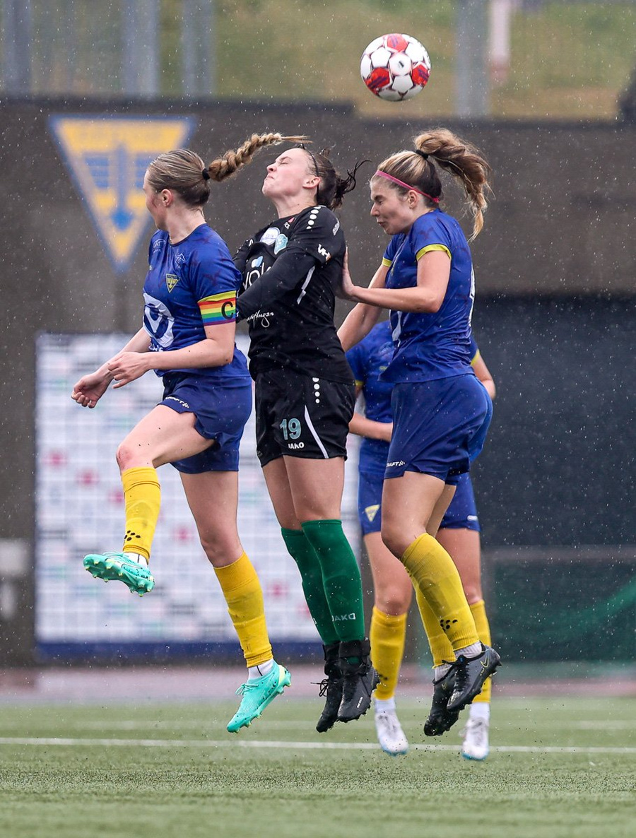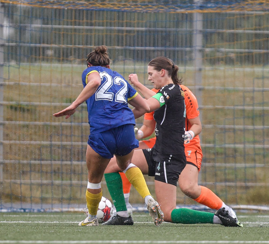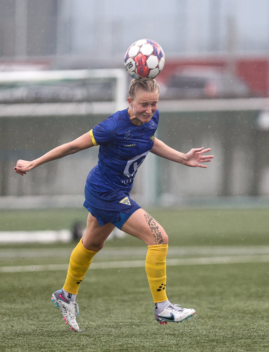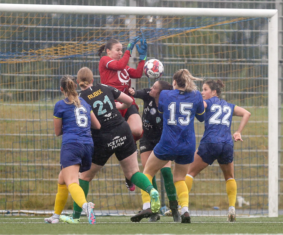 Stórskemmtilegur leikur í grenjandi rigningu. Hannah Abraham fór á kostum og skoraði fjögur mörk!
