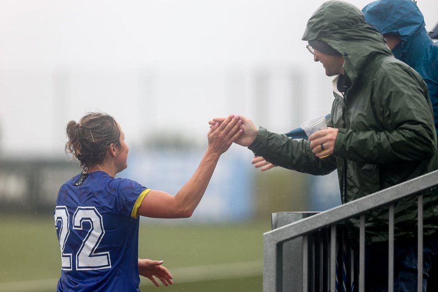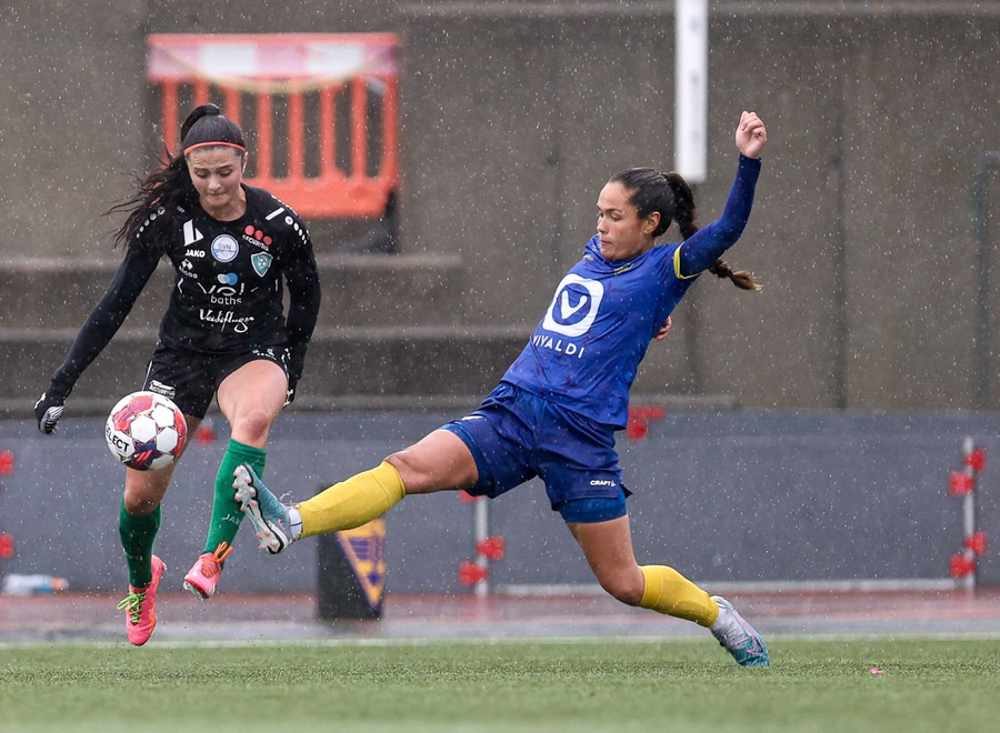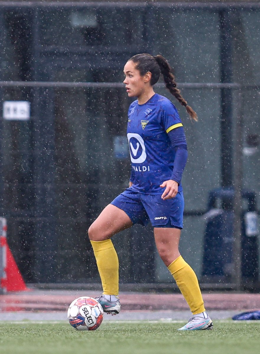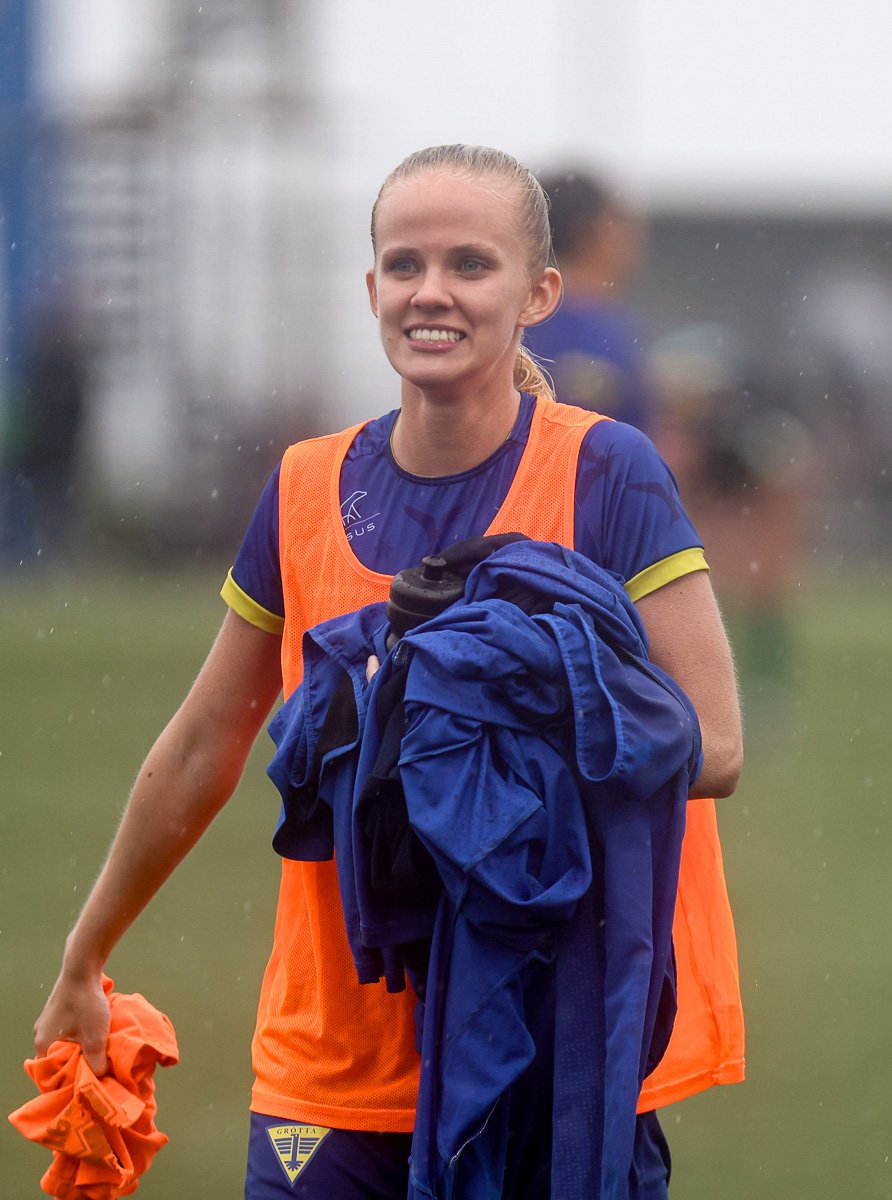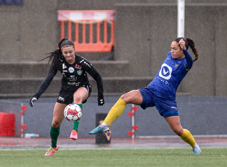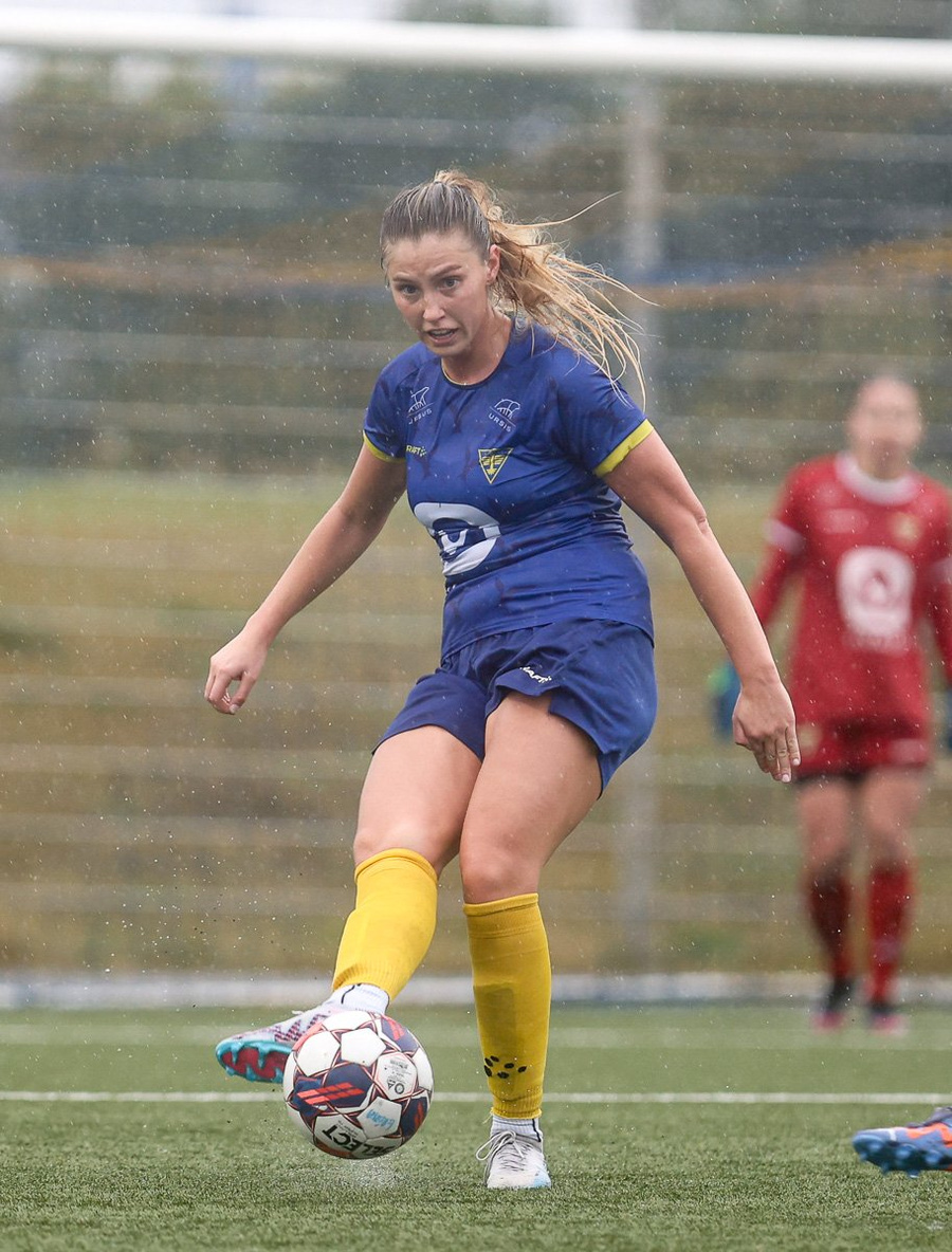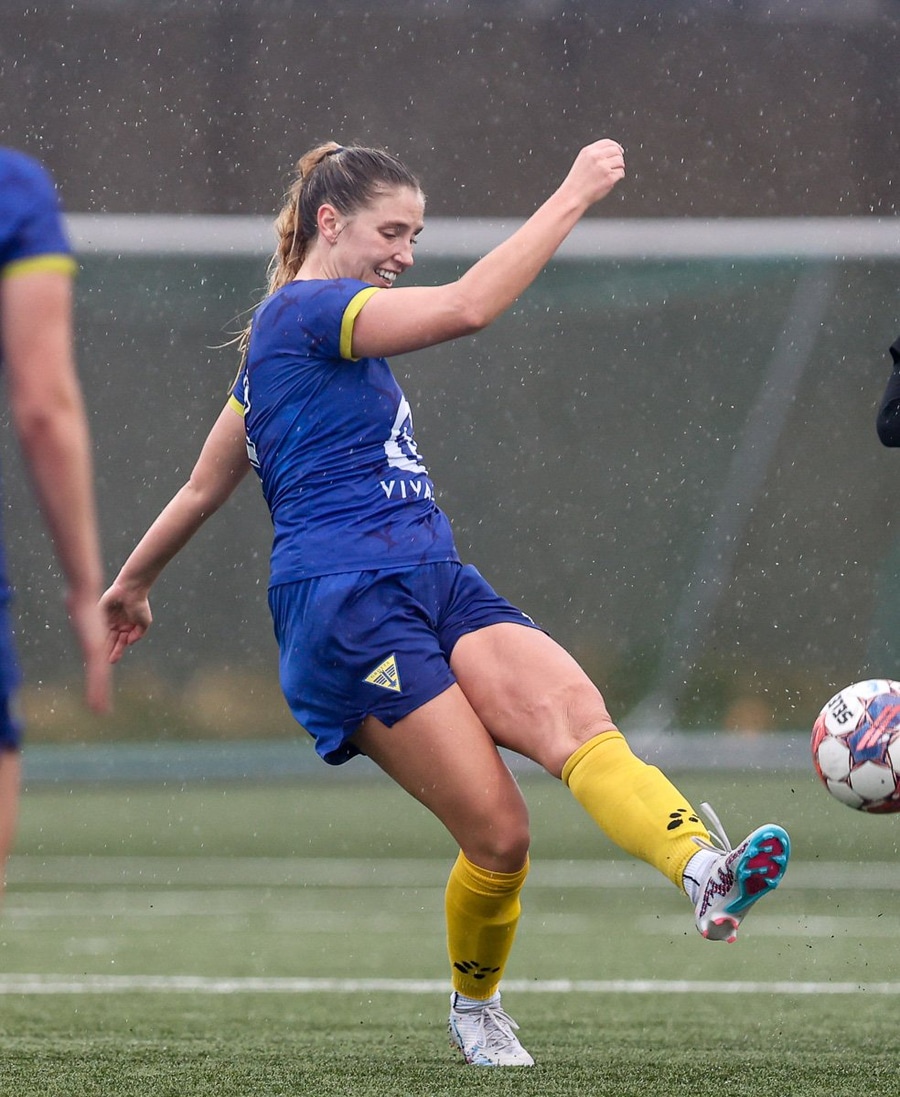 Stórskemmtilegur leikur í grenjandi rigningu. Hannah Abraham fór á kostum og skoraði fjögur mörk!