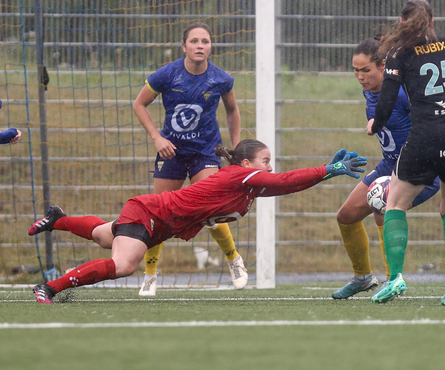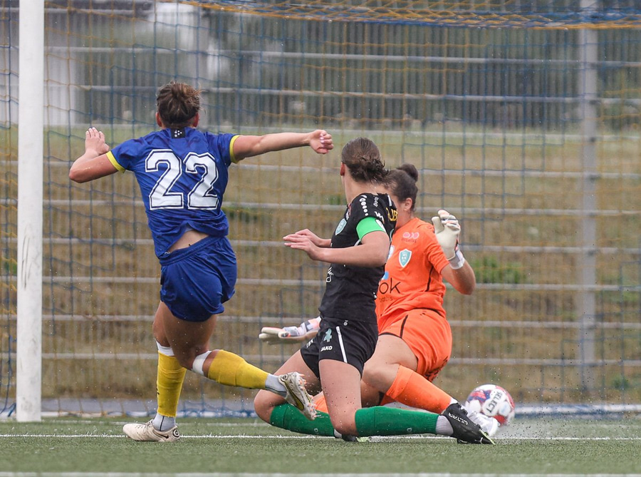 Frábærlega gert hjá Halldóru! Hún kemst framhjá Corneliu í markinu og kom boltanum í netið!