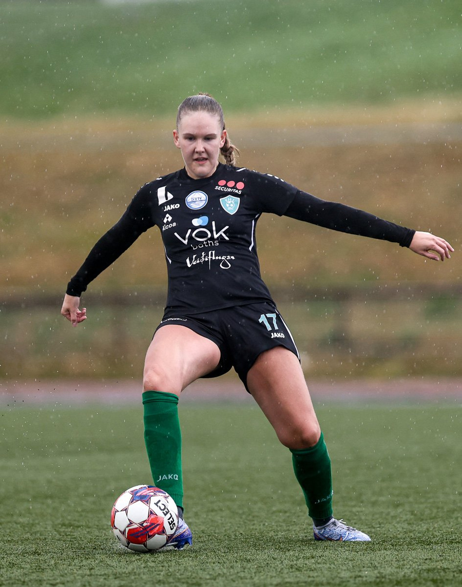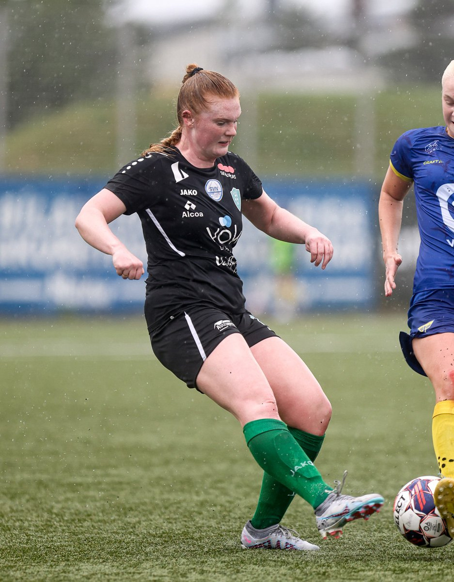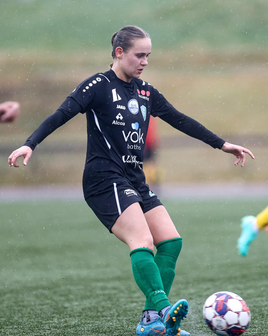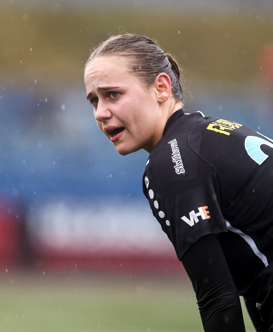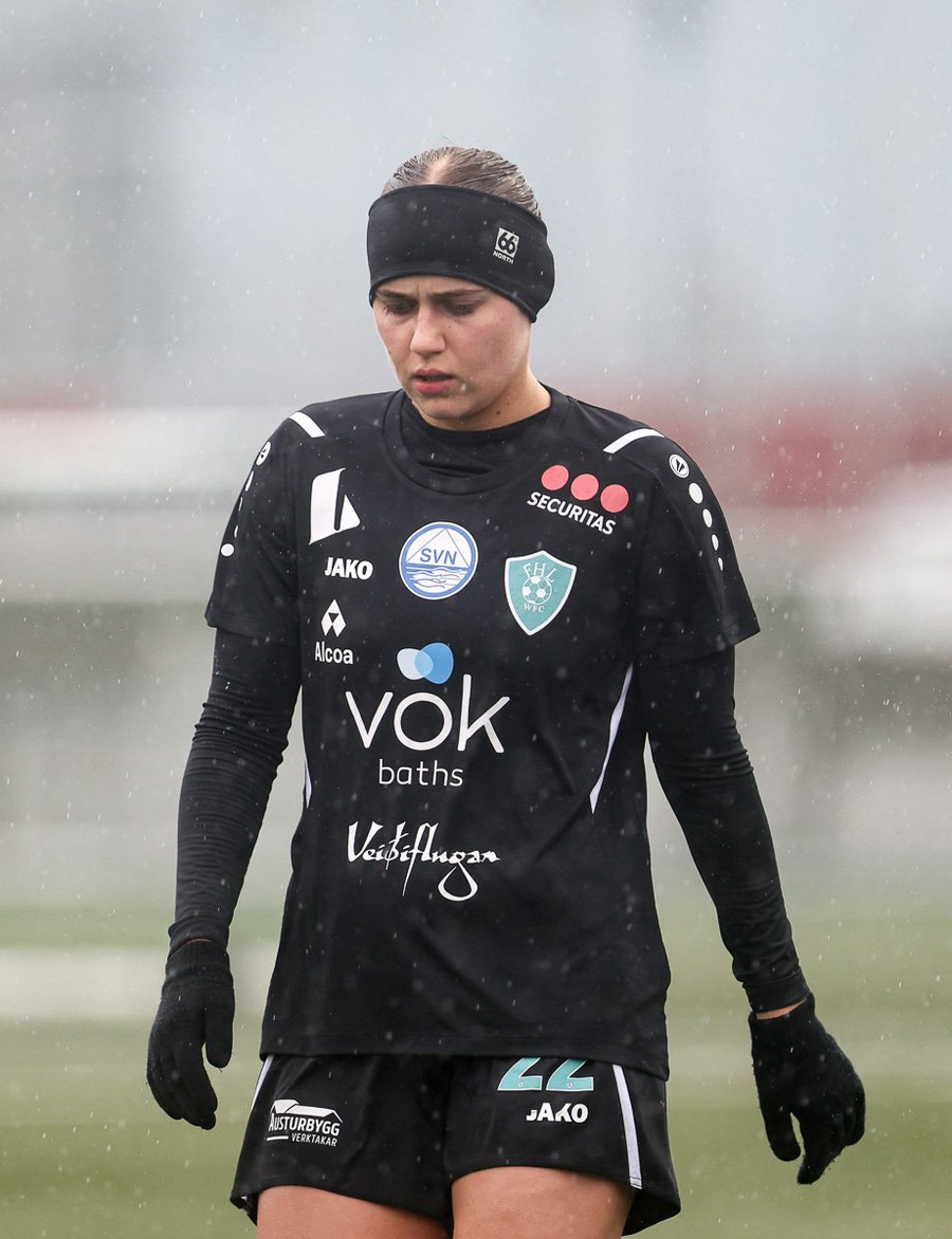 María Lovísa kominí vænlega stöðu útt á vinstri kantinum. Hún er rangstæð.