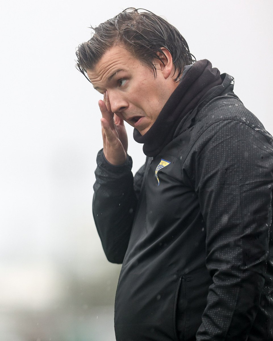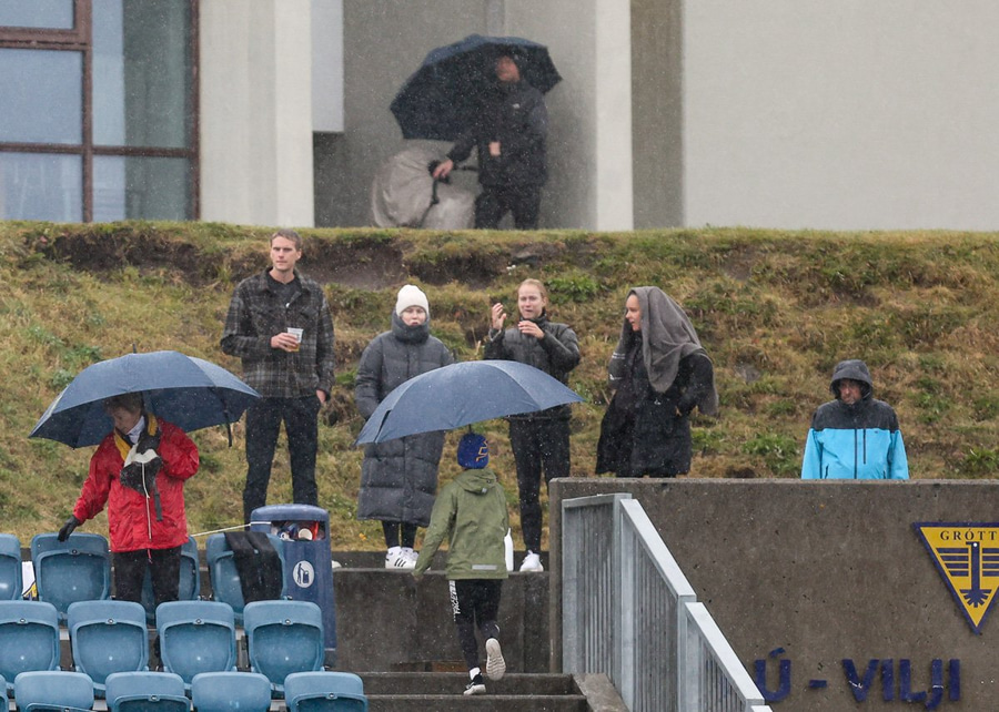 Stórhættulegur bolti inn á teig Gróttu. Cornelia reynir að grípa hann en boltinn er rennandi blautur og hún missir hann. Boltinnskoppar inn á teignum en enginn nær að pota honum inn.