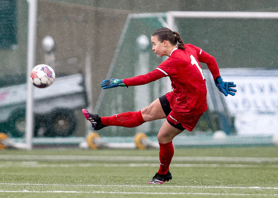 Hættuleg fyrirgjöf inn á teig Gróttu og skalli í átt að marki. Vel varið hjá Corneliu.