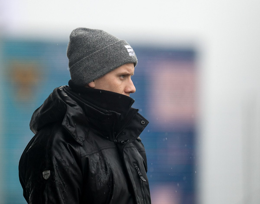 Húntekur aukaspyrnuna stutt og Grótta fær innkast.