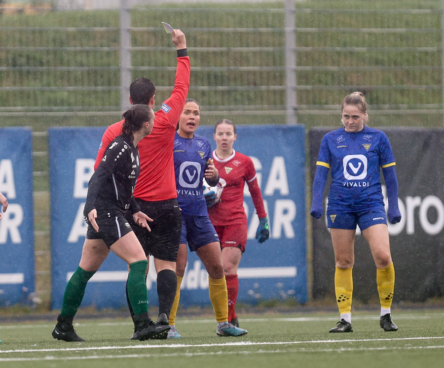 Þjálfarateymi Gróttu vll fá rautt á Natelie en spjaldið er gult.