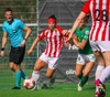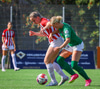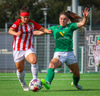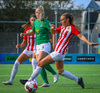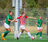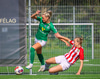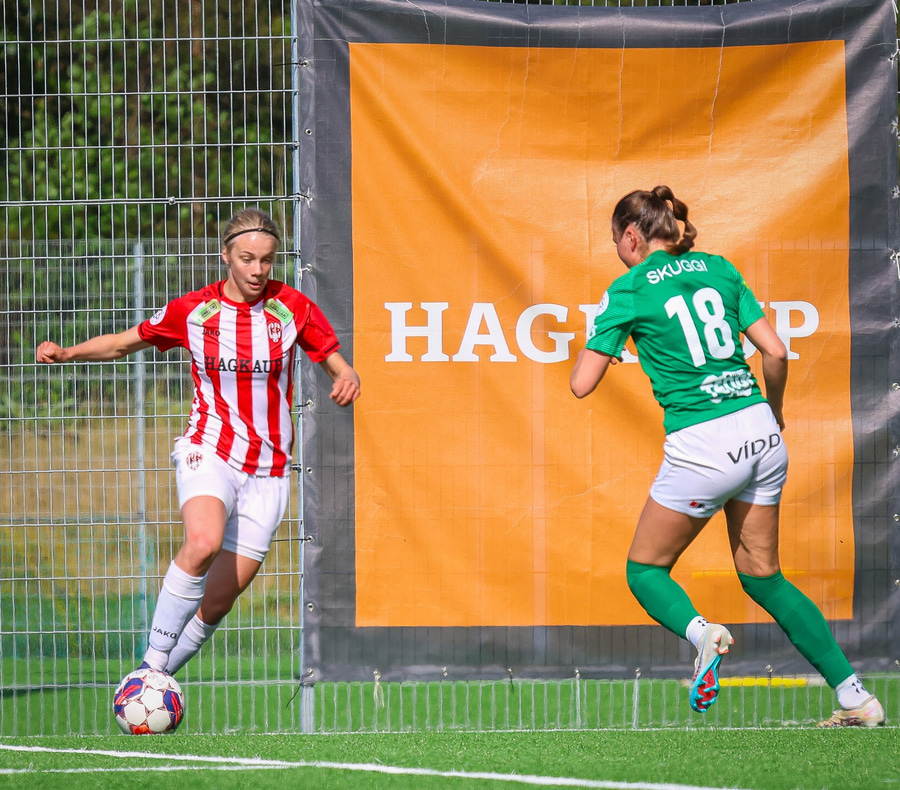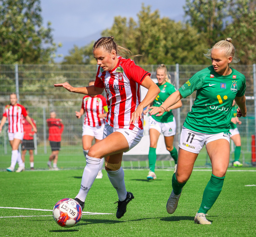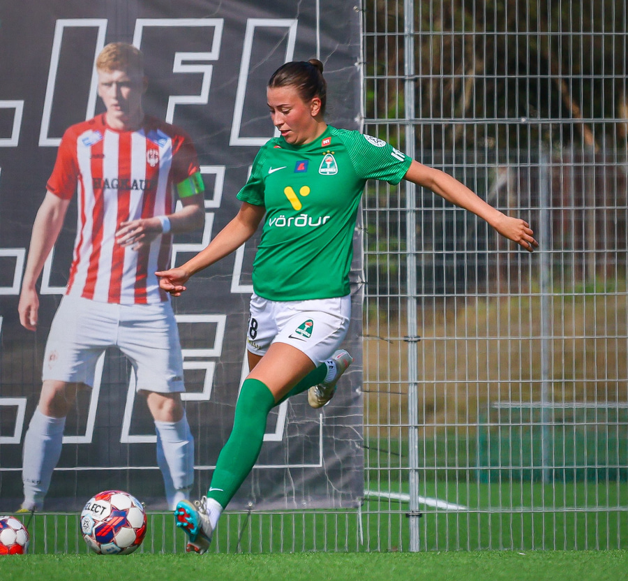 María fer illa með Vigdís Lilju hérna úti hægra megin og á frábæra sendingu en vantaði mannskap inní og boltinn aftur fyrir.