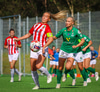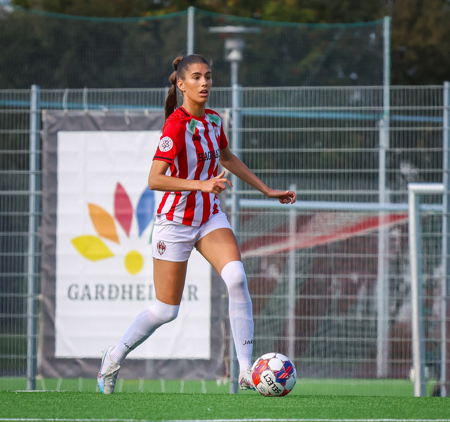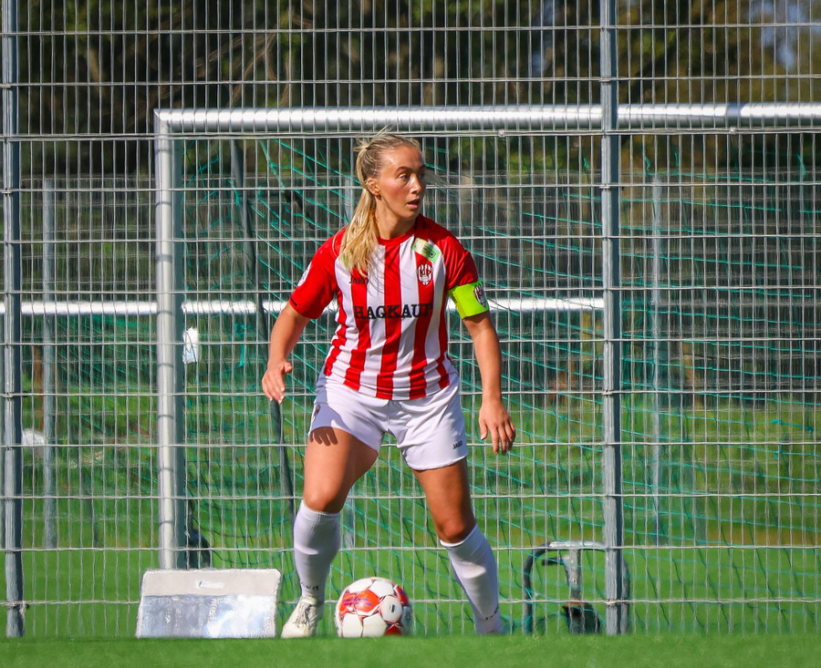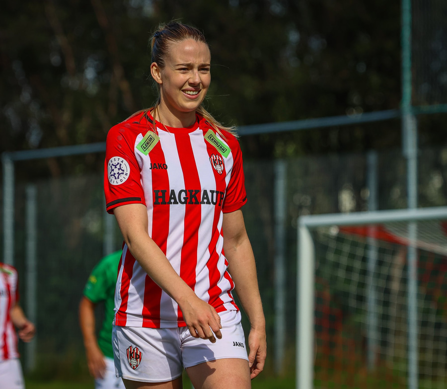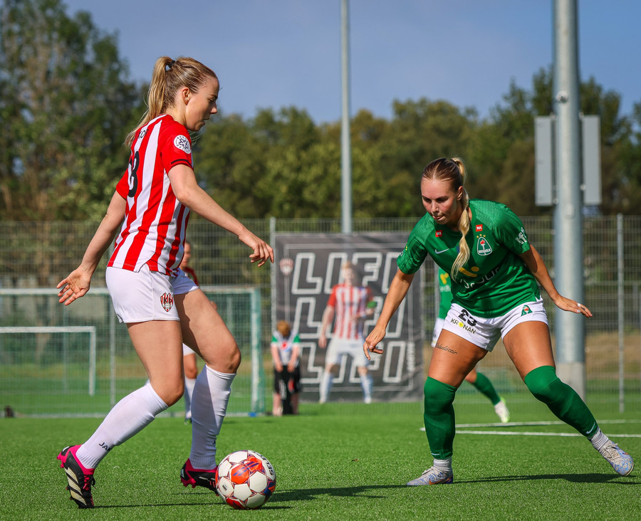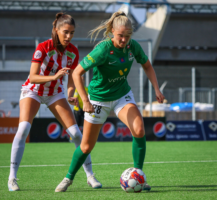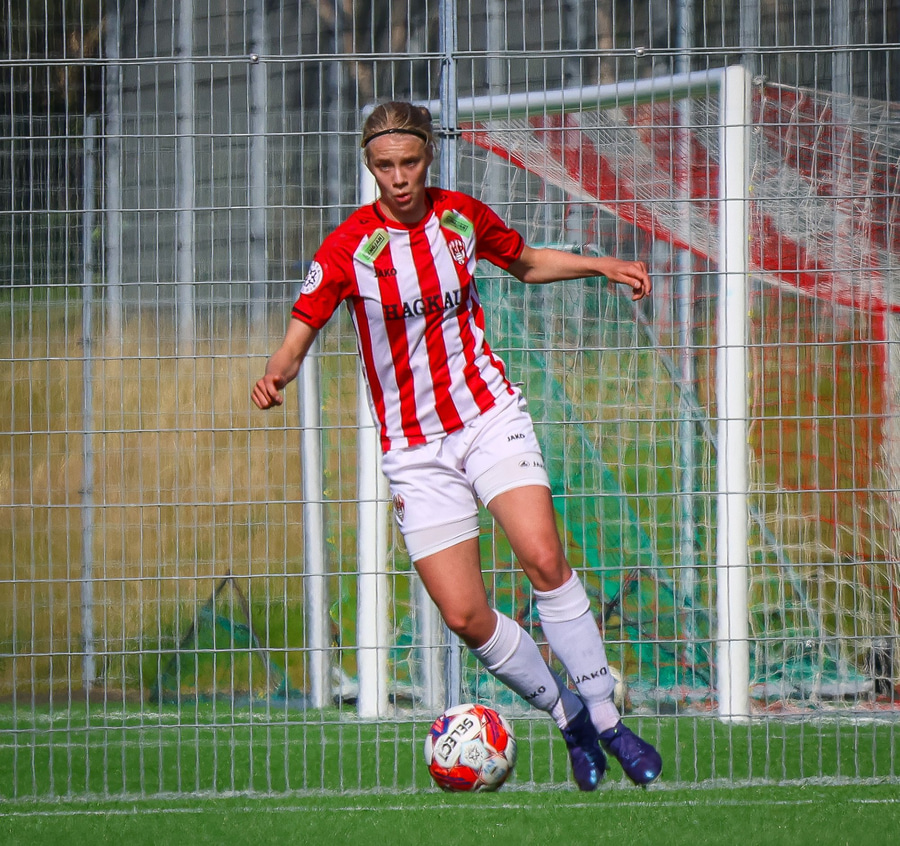 Taylor fær boltan á miðjunni finnur Öglu í labbir sem gerir frábærlega að komast framhjá Mikenna en á skot í varnarmann, Agla afar hættuleg hér í byrjun leiks.