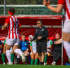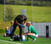 Sóley sest niður mér sýnist hún þurfa aðhlynningu, Hún er að koma af velli þróttarar eru hér að gera breytingu.